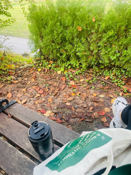 지금은 나의 집 앞마당이라고 할 수 있는 탄천의 힐링존에 와 있다. 레몬생강차 텀블러에 담고, 책 한 권 준비. 가을날씨에 탄천뷰 너무 행복하다.