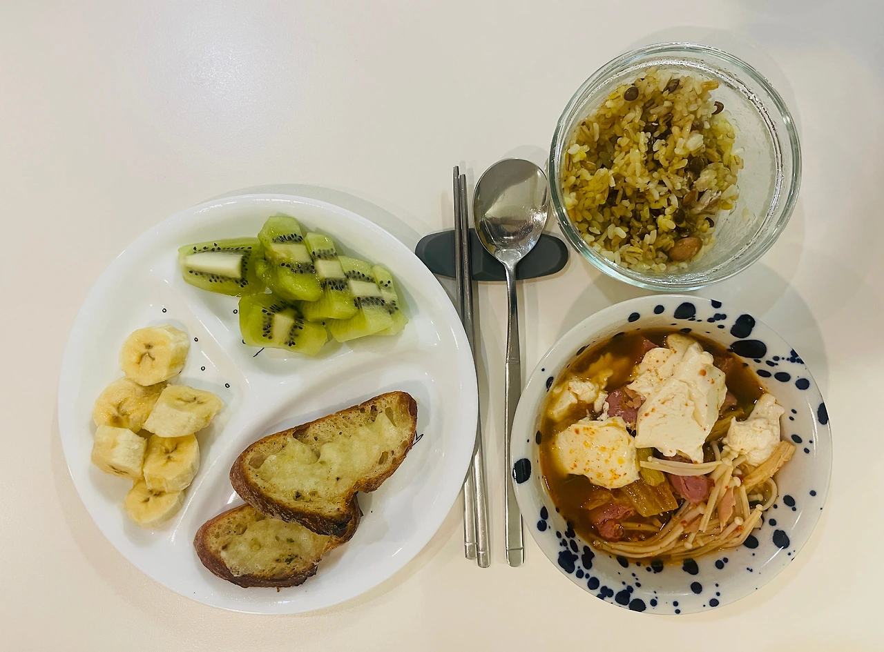 목우촌햄 선물로 들어온 것 있어서 순두부, 야채, 김치 등 냉장고에 있는 재료들 넣어서 부대찌개 끓였다. 설탕 대신 에리스리톨을 넣었는데, 부대찌개엔 아주 조금이나 안 넣어도 될 듯하다.