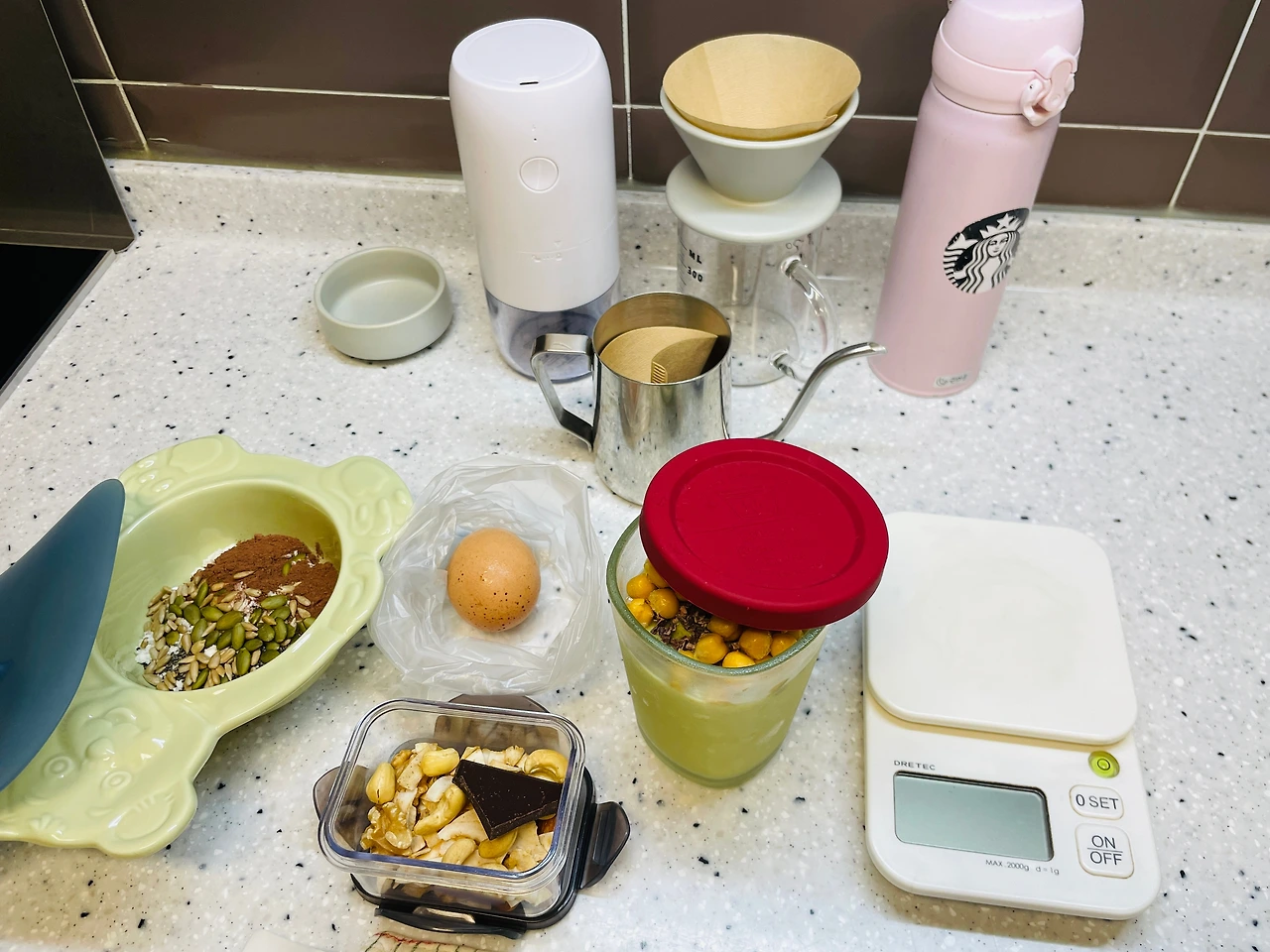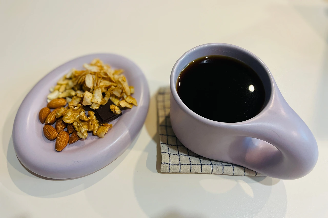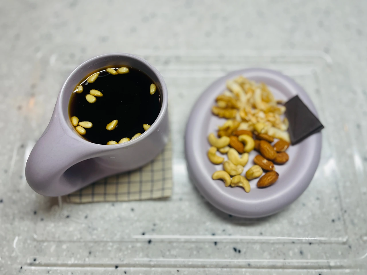 첫 식사 다음으로 먹는 것이 커피랑 견과류 간식인데 이렇게 먹고 나면 포만감이 들고 입이 심심해서 뭐 좀 먹을까...라는 생각이 드는 거지 배가 고파서 먹어야겠어! 같은 식욕은 거의 없다.