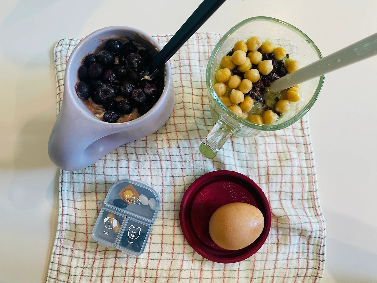 정오 이후에 먹는 나의 첫 식사는 거의 매일 같은 식단. 그린스무디, 계란, 요거트볼이다.