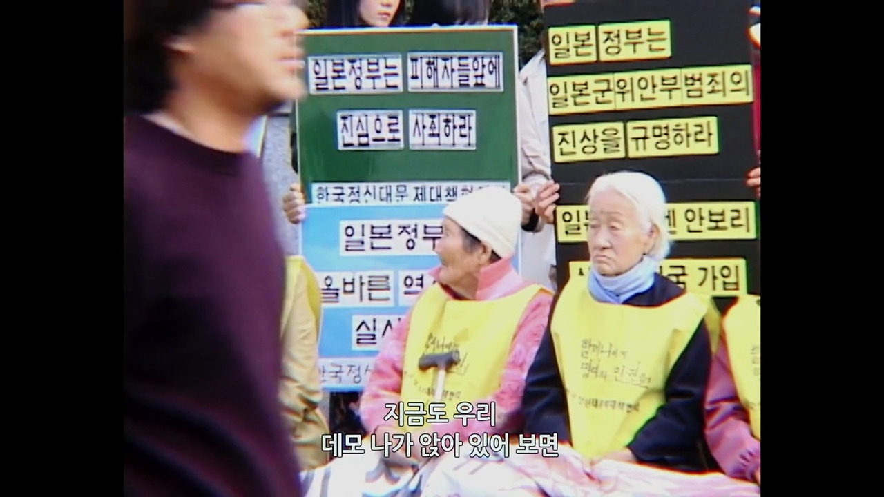 이 두 영화를 다 보고 나면 '위안부' 생존자들에 대한 진심 어린 존경심에 젖게 된다. 피해자로서의 삶을 헤쳐와 여성인권운동가로서 역사 앞에 당당히 선 인간에 대한 진심 어린 경탄 말이다. 성폭력은 피해자의 탓이 아니라고 말했던 여성주의가 이 땅에 발화하기 전, 생존자들은 자신들의 폭력 피해를 그저 부끄러운 것으로 가슴에 묻으며 젊은 시절을 통과해야 했다. 그리고 90년대 들어 비로소 '위안부' 피해에 공감하는 소수의 시민들이 나타났을 때, 생존자들은 이 사회 앞에 모습을 드러내며 자신이 '위안부' 피해를 겪었음을 신고했다. 그럼에도 불구하고 '위안부' 개념이 아직 낯설고 데모하는 할머니들은 더더욱 낯설었던 90년대와 2000년대에, 생존자들은 '부끄러움은 일본의 몫'이라며 일본군 '위안부' 진상규명 운동을 시작하셨다.