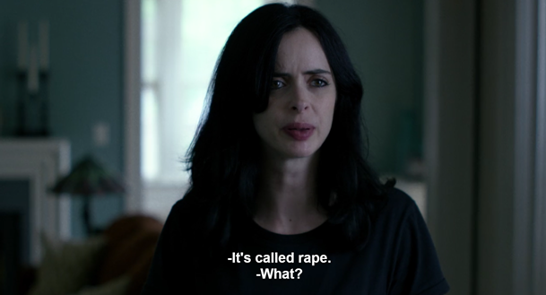 <제시카 존스>는 제작 과정에 있어 생생하게 페미니즘의 목소리를 담아 만들어진 작품이다. 시즌2는 모두 여성 감독이 맡았을 정도다. 시즌1은 친밀한 과정에서 발생하는 데이트 폭력을 잘 담아냈다. 주인공 제시카는 불의의 사고로 초능력을 얻게 되지만 때 마인트 컨트롤을 할 수 있는 킬그레이브를 만나 조종당하게 된다. 킬그레이브에 의해 원치 않는 폭력을 저지르고 원치 않는 성적 관계를 가져야했던 제시카는 말한다. 동의가 없었으니 그건 강간이라고.