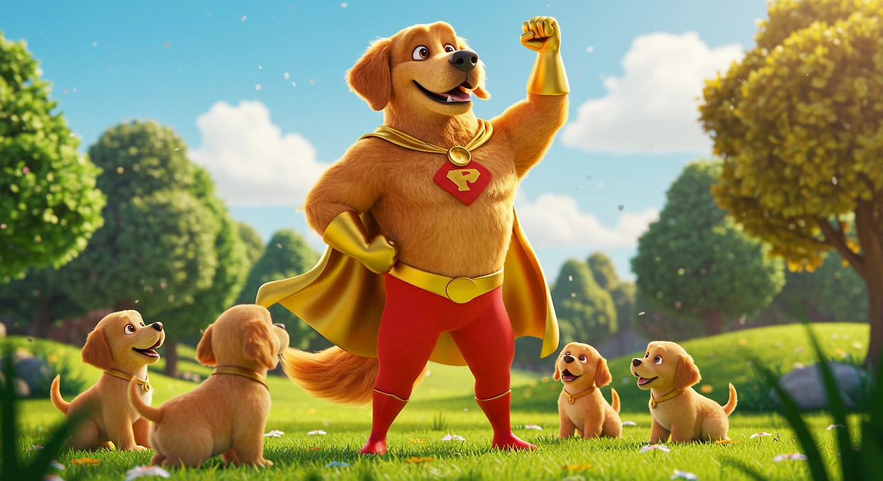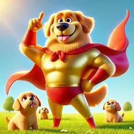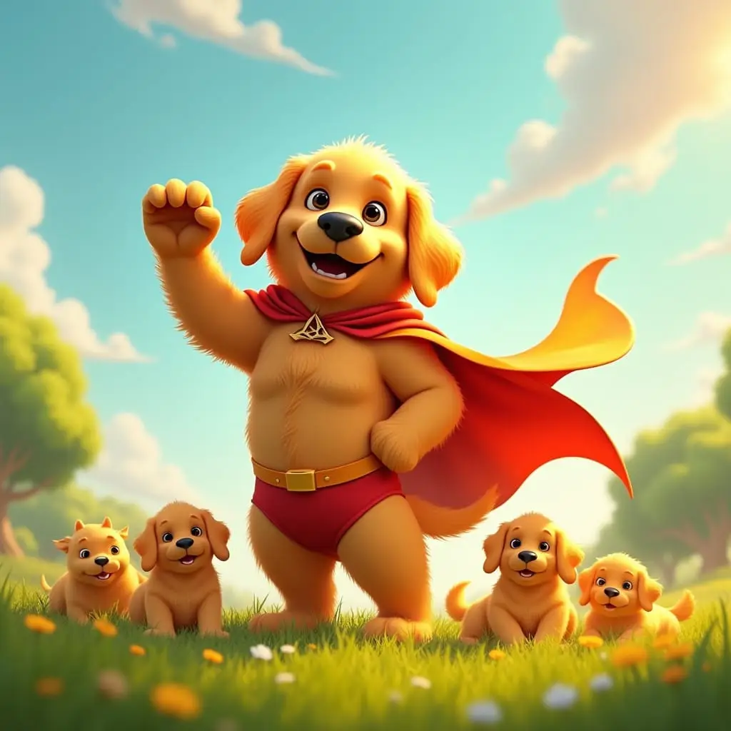 또 작은 골든 리트리버들이 히어로 주변에서 구경하는 이미지로 해 달라고