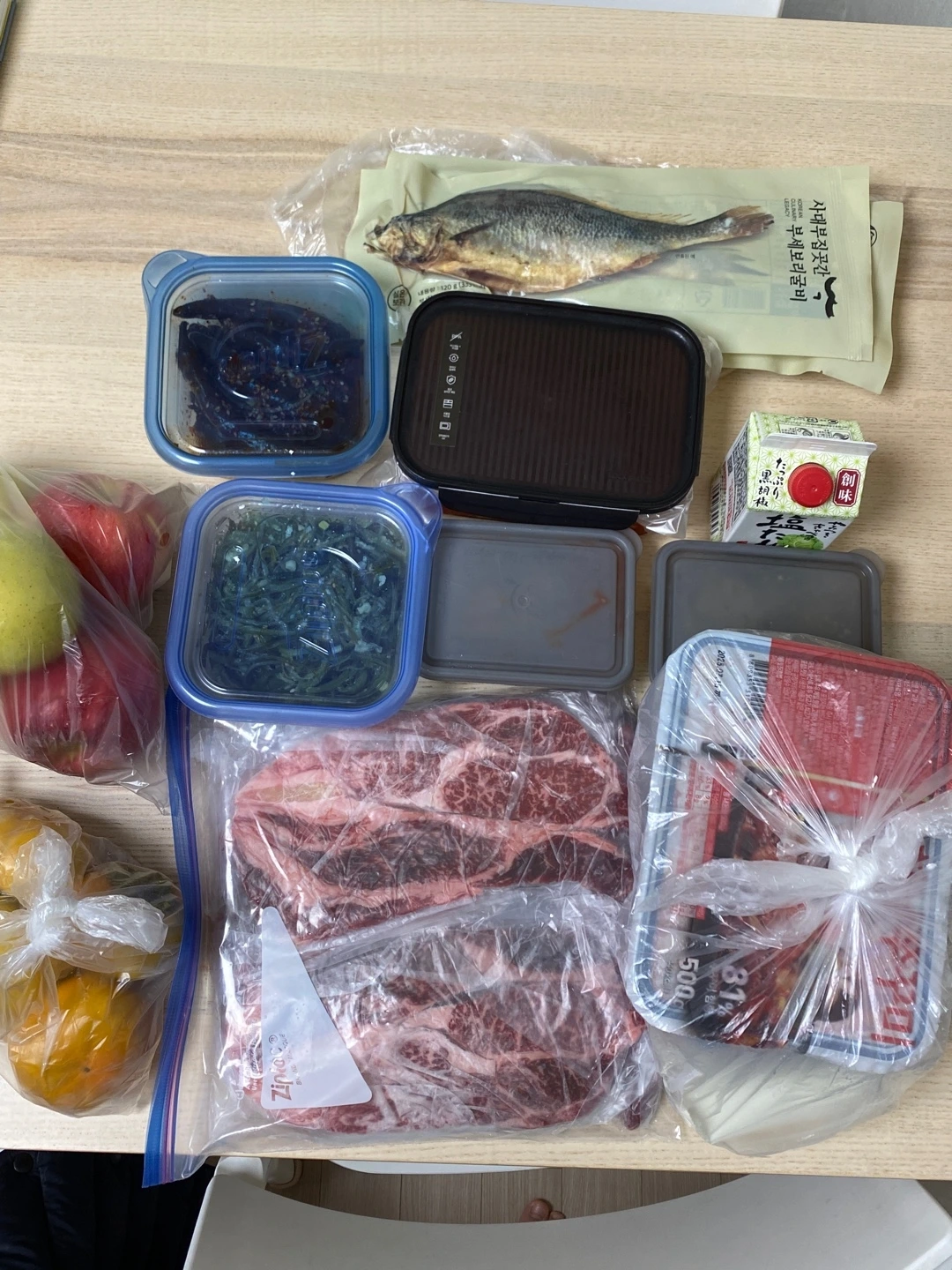그런데 이런 엄마의 마음이 우리 엄마뿐이랴. 동거인 엄마도 마찬가지~! 휴가라 집에서 쉬고 있는데 동거인이 곧 택배가 갈 거니까 냉장고에 넣어두고 저녁으로 먹으라며 카톡을 보냈다. 궁금해하며 배송 온 아이스박스를 열어 보니(명품 언박싱 보다 더 기대되는 순간) 각종 반찬, 쭈꾸미 밀키트, 한우, 보리굴비, 심지어 보리굴비와 먹을 녹차물까지! 산해진미가 다 들어있었다. 보리굴비 이름도 사대부집 곳간이다. 얼렐레~ 내가 정말 사대부집 딸내미랑 사나 보다. 동거인 어머니가 곳간을 터신 게 분명해! 뭐가 냉동이고, 냉장인지도 모르는 우리에게 맛있게 먹는 요리법도 알려주셨다.