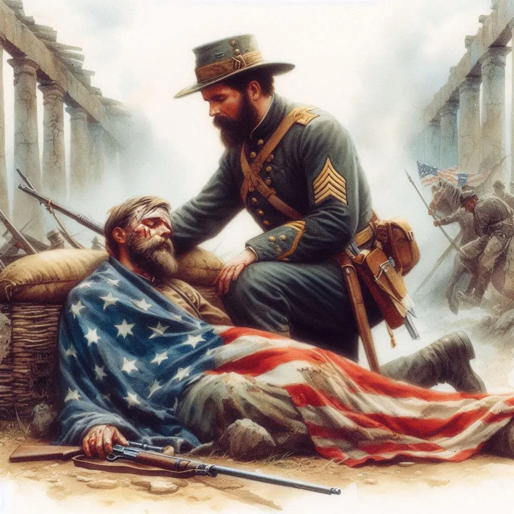 그 순간, 프레드릭 복부로 어디에선가 날아온 총알로 관통을 당했고 피범벅이 된 채 프레드릭은 울부짖으며 리암 측 쪽으로 손만 허적거리고 있었다. 리암은 당장이라도 달려가고 싶었으나 테네시주 출신 노병은 뺨을 때리며 그의 허리춤을 잡고 움켜쥐고 있었다.