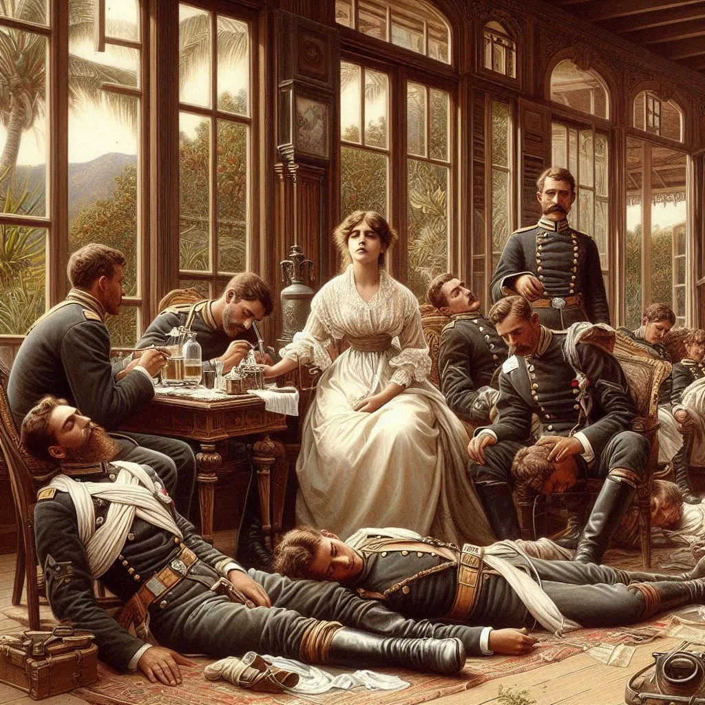총독 부인 역시 이 고통을 바라보며 마음이 아파왔고 그녀는 항상 부유한 삶을 살아왔지만, 그날따라 부상당한 병사들의 고통이 더욱 크게 다가와 표정은 어두웠다