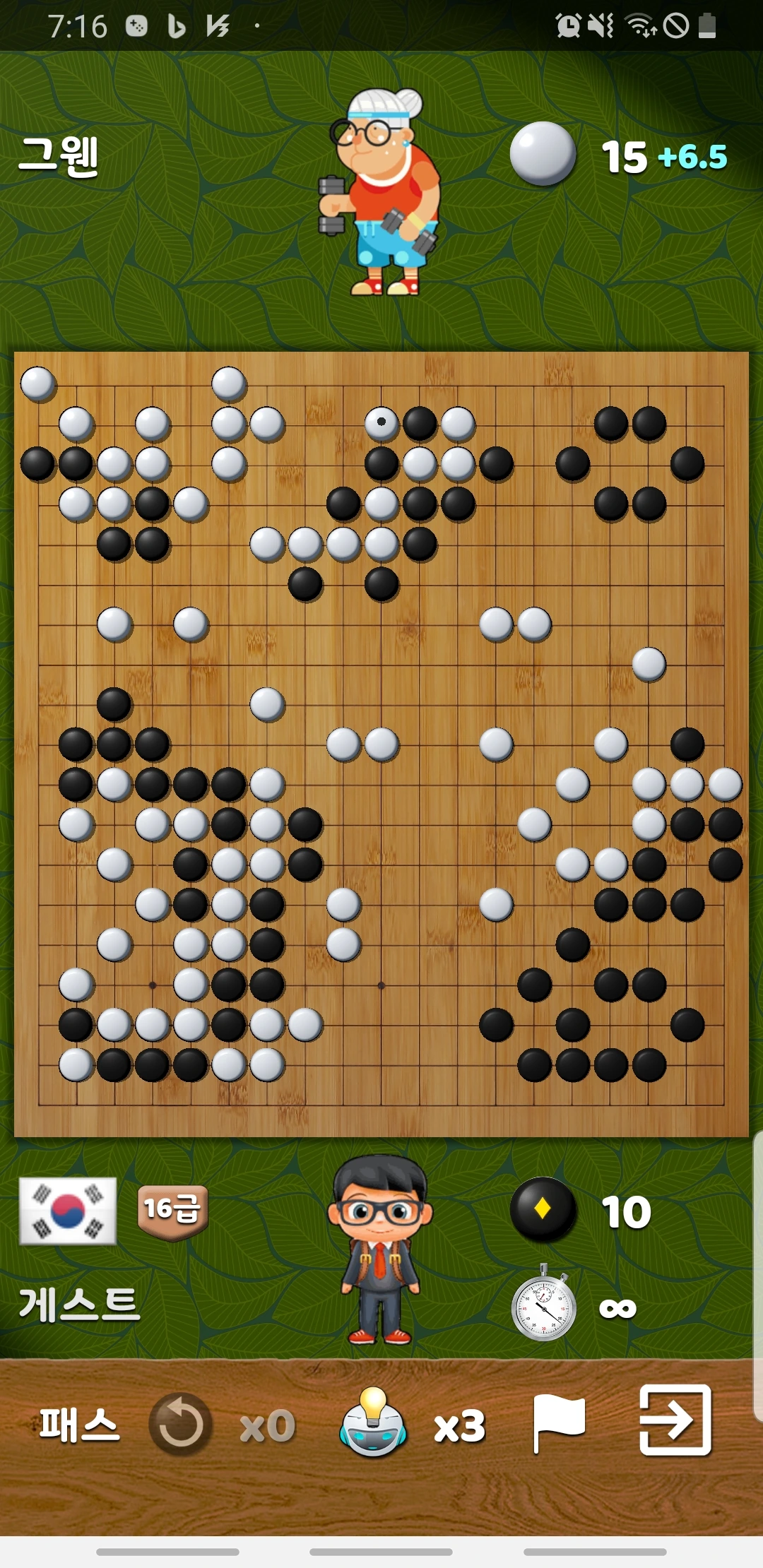 지금 이 스마트폰 바둑친구와 바둑을 두면서 나는 비록 패하더라도 도중에 끝내서는 안 된다는 아집을 갖게 되었다. 때로는 과감하게 공격을 시도해도 결국은 나는 스마트폰 AI에게 내 수를 다 보여주고 있다.
