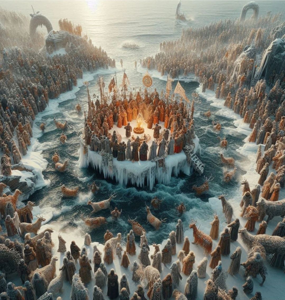 아무리 털가죽을 두른다 하더라도 얼굴 그리고 손등의 피부는 에이는 찬바람으로 감각이 없기 일쑤였으며 호수 주변은 두꺼운 눈으로 덮여 있었고, 항상 바람이 강하게 불었다. 고작해야 밤하늘의 달이 두어 번 없어지고 차오를 때 정도의 기간 동안 가축들이 먹을 수 있는 풀이 들판을 덥을 뿐이었다