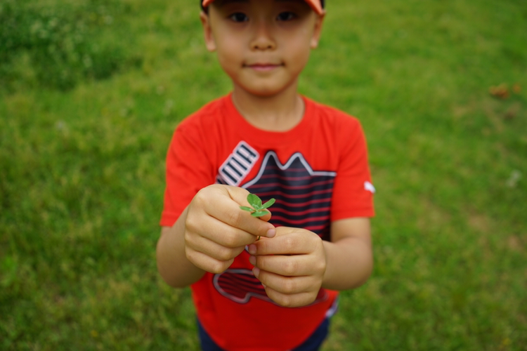 그렇게나 바라던 네잎 클로버를 발견한 아들.