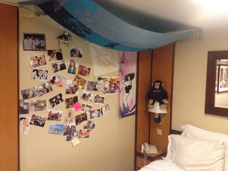 (승무원 방에 붙여있는 사진들. 이 사진들이 있는 공간이 바로 집이다.)