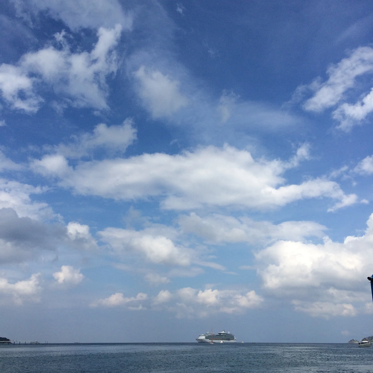 (태국 푸껫에서는 크루즈가 부두에 정박을 하지 않고 바다 한가운데 떠있다. 작은 보트를 타고 승, 하선을 하는데, 보트를 타고 나가 관광을 하고 돌아오는 길에 저 멀리 크루즈가 보이면, 먼 여정 후 집에 돌아가는 것처럼 마음이 편안해진다. )
