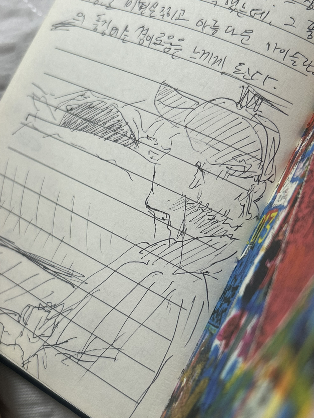그리고 일 년이 지난 지금까지도 아날로그 일기를 쓰는 습관은 계속되어서 어느새 한 권을 다 채우게 되었다. 몹시 뿌듯한 마음에 그동안 쌓인 일기들을 후루룩 읽었다. 그러다 문득, 일기장 속 그날의 내 시점이 현재 나의 시점과 중첩되는 듯한 느낌이 들었다. 나는 한국의 내 방 책상에 앉아있는데 일기를 읽는 순간만큼은 마치 독일 학교의 기숙사 방에 앉아있는 내가 된 듯했다. 페이지를 넘길 때마다 아이슬란드에 갔던 나, 런던에 갔던 나, 프라하에 갔던 나가 스쳐 지나갔다. 그림을 볼 때 화가의 붓놀림이나 펜터치를 내 손 끝에서 떠올릴 때 느끼는 것과 비슷한 감상이었다. 이는 일기장 하단에 일기를 쓰던 당시의 내가 눈앞의 풍경을 끄적여 놓은 낙서를 볼 때 더 극대화되었고 나는 내 기억을 도장 찍어둔 듯 생생히 일깨워주는 이 낙서들이 참 기꺼웠다.