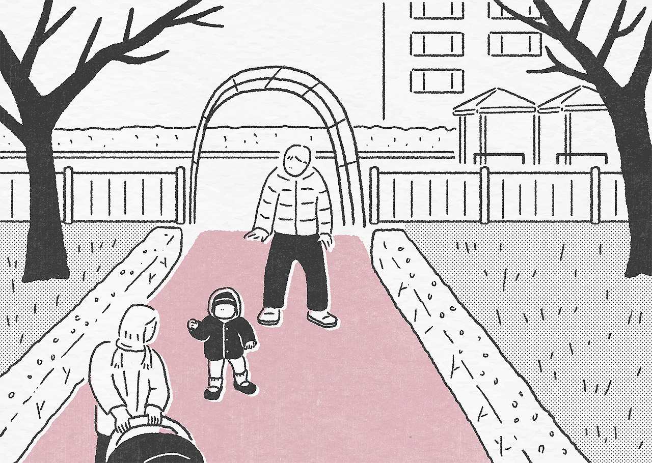 아기띠와 유모차가 있어야 나올 수 있던 아이가