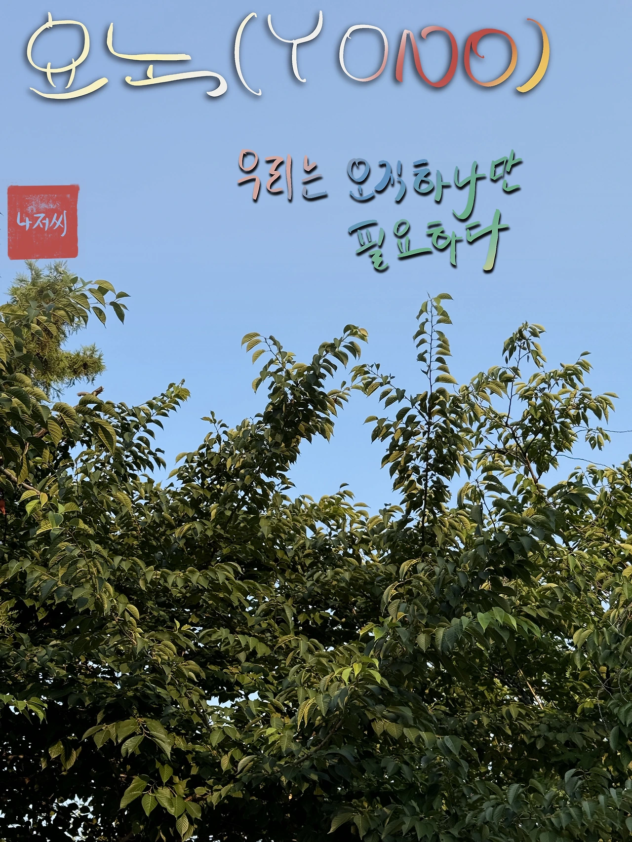 요노. You Only Need One(YONO). "내 삶에는 오직 한 가지만 필요하다"는 뜻으로, 나에게 오직 필요한 한 가지는 공생이란 생각을 했다. 나이를 먹어 가면서, 나의 체력이 쇠약해져 가는 지금 '혼자'가 아닌 '함께'하는 삶이 나에게 가장 중요한 가치라 판단한 것이다. 지금 하고 있는 그림, 캘리그래피, 스페인 수업이 나를 위한 시간이지만, 동시에 나를 가르쳐주는 이들에게도 다양한 가치를 제공해 주는 그런 만남을 만들어 내기 때문에, 내가 더욱더 취미부자가 되어가는 게 아닐까 싶다.