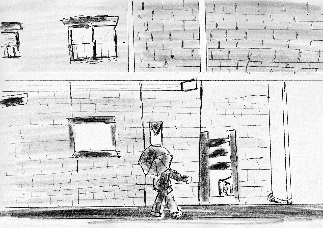 우산을 받쳐 들고 빗줄기를 헤쳐 나가며