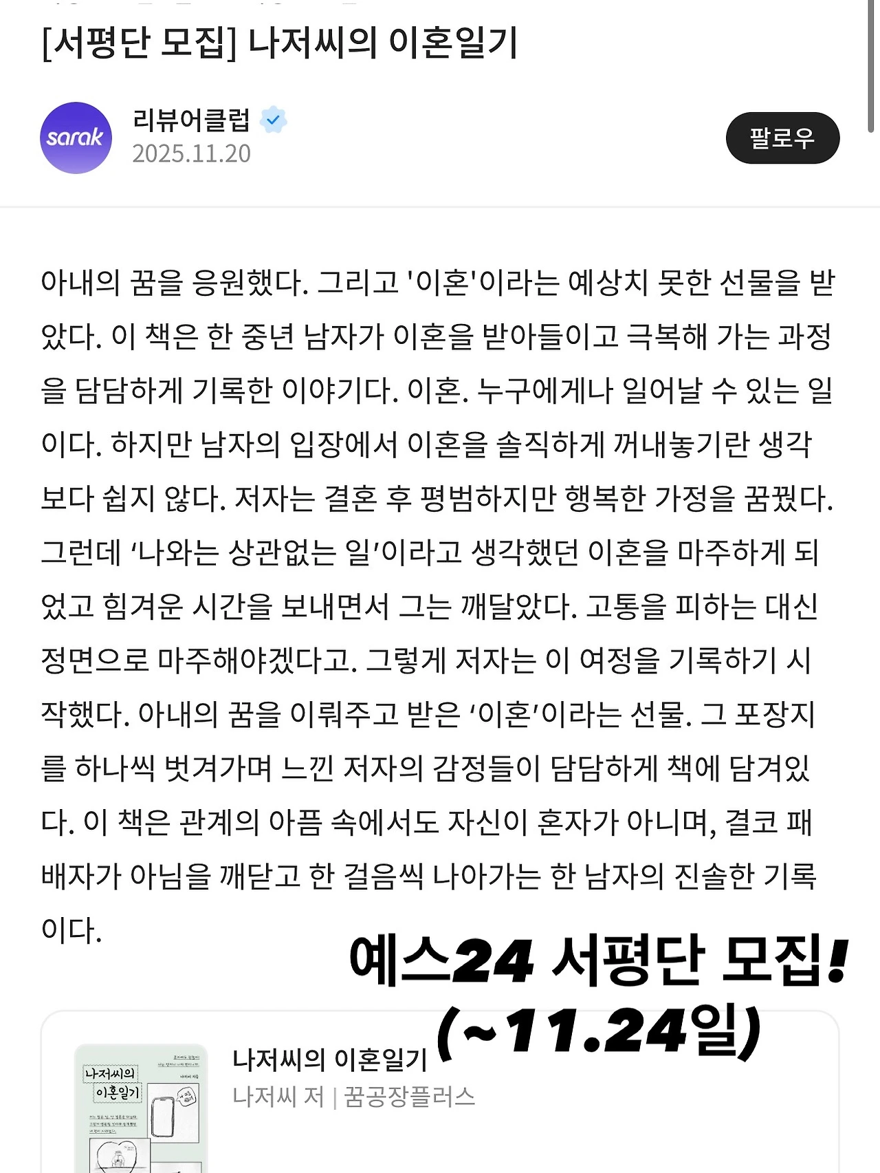 예스 24에서 나저씨의 이혼일기