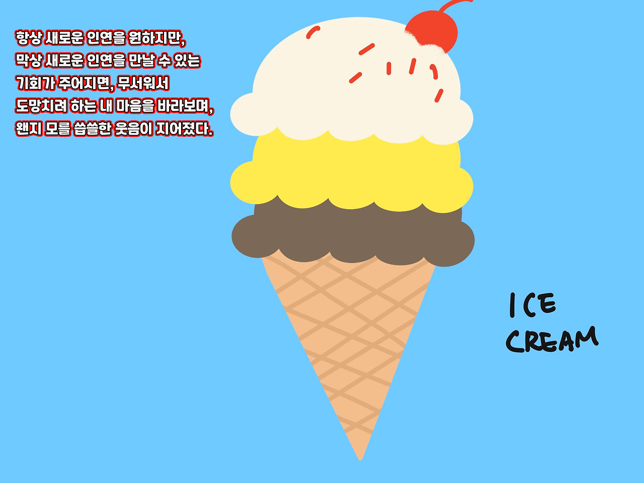 항상 새로운 인연을 원하지만, 막상 새로운 인연을 만날 수 있는 기회가 주어지면, 무서워서 도망치려 하는 내 마음을 바라보며, 왠지 모를 씁쓸한 웃음이 지어졌다.