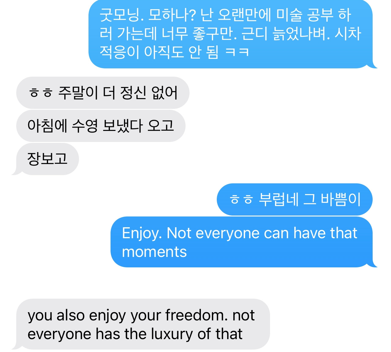 “모든 사람이 다 그런 행복을 누리는 건 아니니 감사한 마음으로 시간 보내“