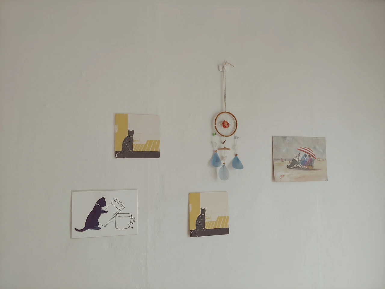 그래서 기껏 마련한 나의 집엔 휑한 공간이 많았다. 또 역시나 변덕스럽게도 그 휑한 공간이 조금 지겨워져서 이사갈 때마다 붙여놓고는 했던 드림캐쳐와 엽서를 꺼냈다.