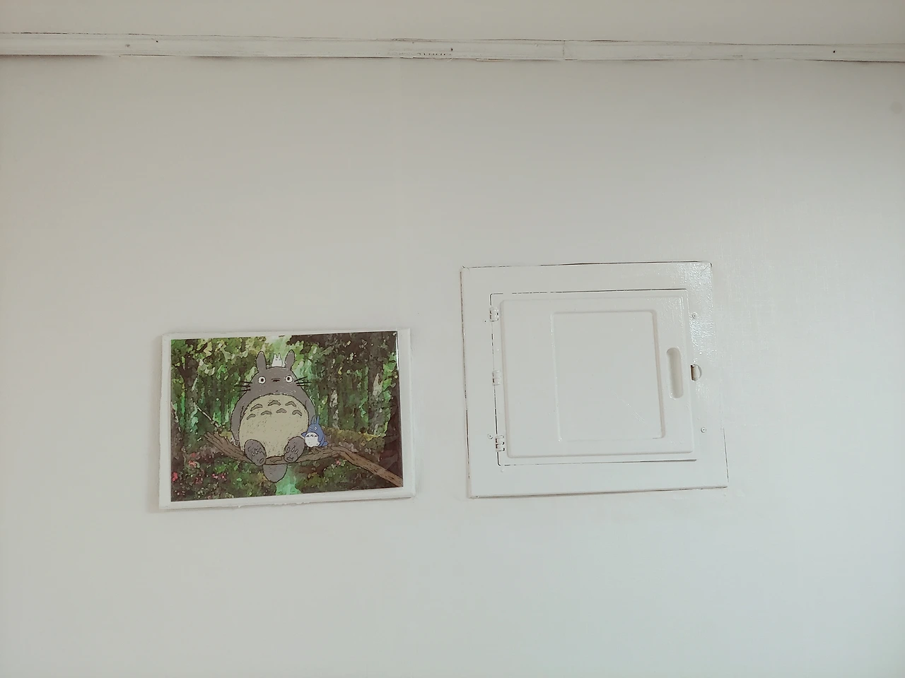 이사 올 때 부터 막연히 무언가로 가릴 예정이었던 두꺼비집은 예쁜 액자마냥 사이즈가 딱 맞았다. 사실 이 곳에 붙일 생각도, 크기도 예상에 없었는데 곱게 비닐포장을 한 토토로가 원래 그 자리에 있어야 하는 것 마냥 딱 들어맞았다.