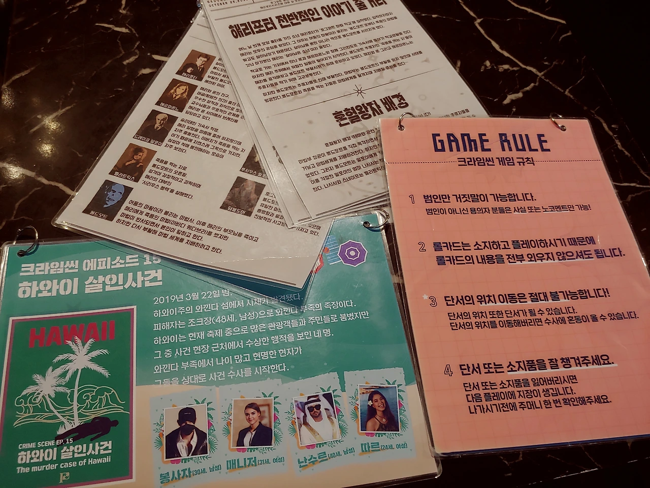 라고 했었다. 하지만 해 보지 않은 것이 있다면 꼭 해봐야 직성이 풀리는 사람으로서 방탈출 고인물인 친구가 권한 [크라임신]은 한 번 해봐도 좋다 싶었다. 마침 새로운 것에 목마르던 차였다.