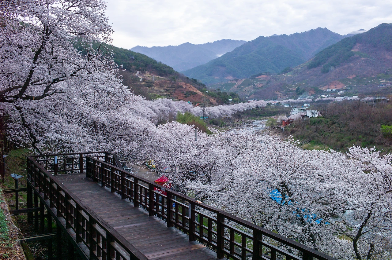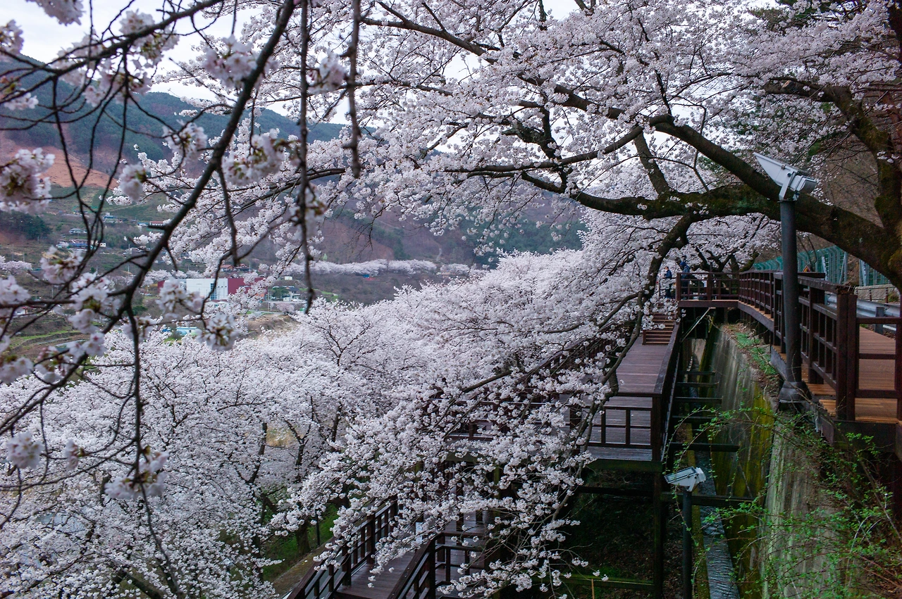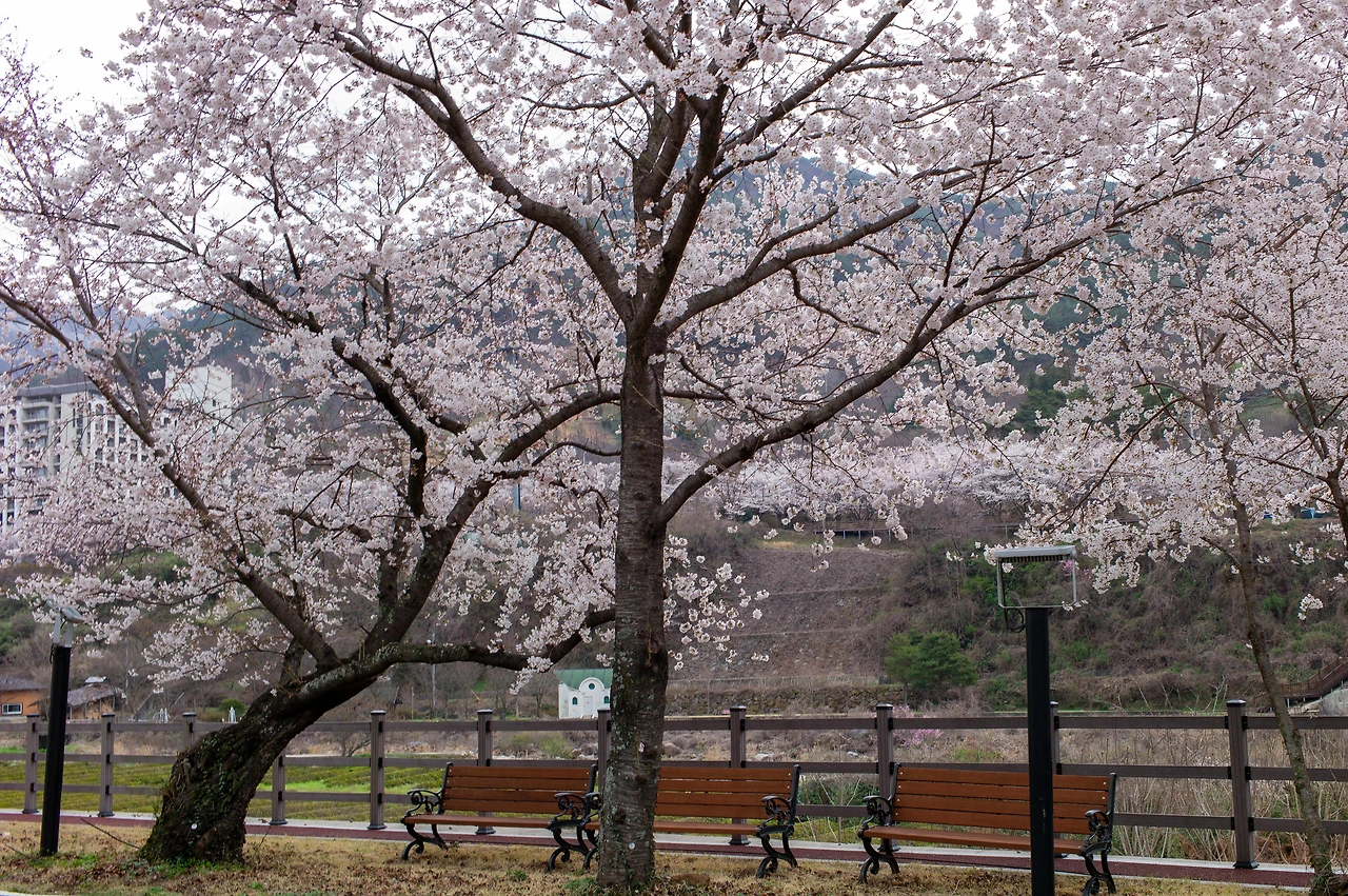 이곳 데크가 꽃 감상하기 가장 좋다. 보통은 땅에서 하늘로 고개를 쳐들고 구경해야하지만, 이곳에서는 눈높이에서 바라볼 수 있다. 그리고 천을 따라 쌍계사 초입까지 벚나무들이 즐비한 것도 볼 수 있다. 나에게는 각별한 곳이다.