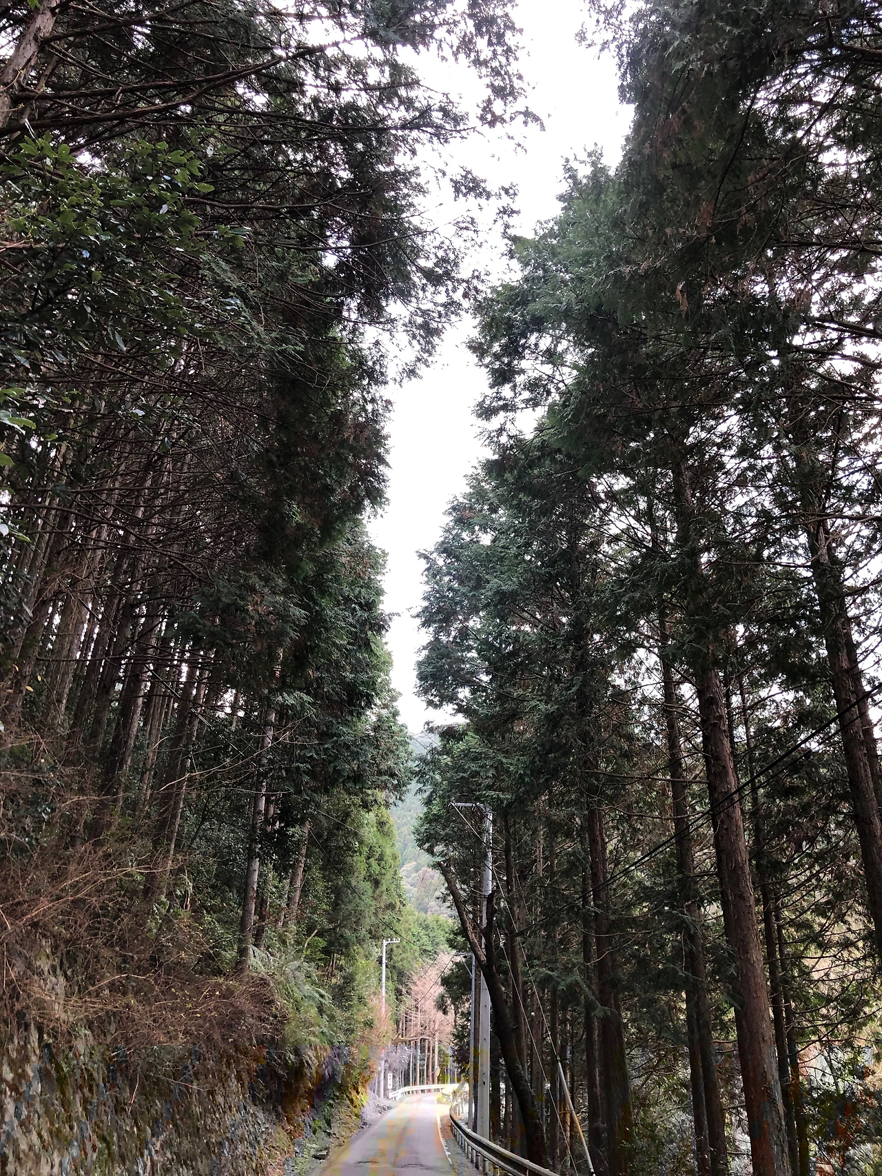 오늘 길은 덤프트럭을 간간히 마주치기는 했지만 깊은 임도를 따라 걷는 것이어서 숲을 산책하는 기분이었다. 지금까지 걸은 도로에 비하면 대단히 유쾌한 길이다. 한 구간에서 길을 막아놓고 포크레인 작업을 하고 있기에 잠시 멈추어서 대기했다. 통제원이 "오헨로상"이라고 하며 무전을 치자, 포크레인이 작업을 중단하고 길을 내주고, 지나가는 나에게 인부들이 "키오츠케떼"(몸조심하세요)라며 인사해준다. 기분이 으쓱해진다.