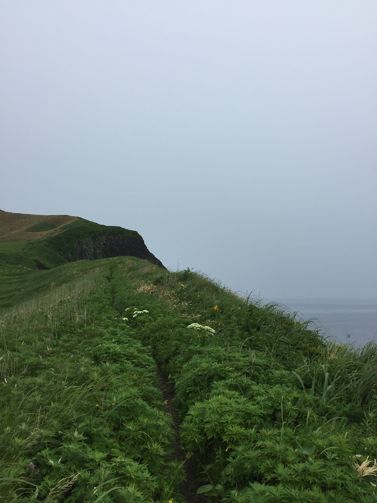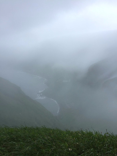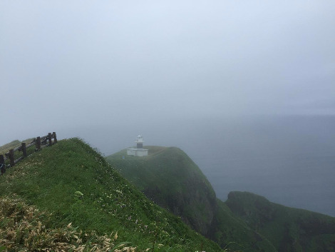 다음날에는 모모이와 언덕을 트레킹했다. 정식 명칭은 ‘Momoiwa Observation Course’ 시작점은 카푸카 항(선박 터미널)이지만, 나는 카푸카항의 정 반대편에 있는 숙소 모모이와소부터 걸어서 시작했다(이 숙소의 운영은 나름 유쾌하고 합리적으로 보이나, 정치적으로 매우 못마땅한 부분이 있다). 제법 걸어 모모이와 전망대에 도착했지만 안개가 짙어 사오십미터 밖은 보이지 않았는데, 수십 분 더 걸으니 막힌 숨을 놓듯 시야가 탁 트이는, 바다와 섬이 한눈에 들어오는 지점이 있다. 그 갑작스러움에 놀라 잠시 주춤거릴 수밖에 없다.