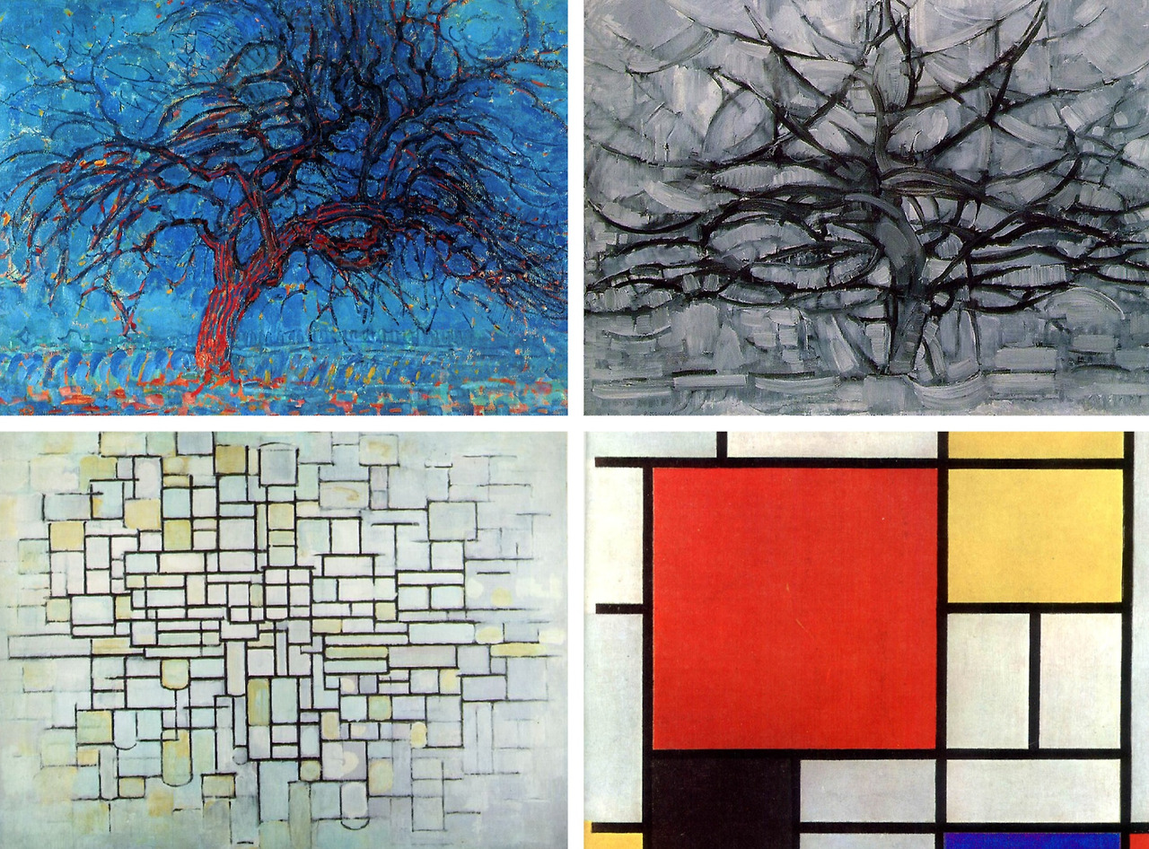 몬드리안은 나무를 그대로 재현(representation) 하지 않는다. 새 잎이 나고, 잎이 지고, 다시 새 잎이 나는 모든 변화의 과정에서 변하지 않는 근원적 요소를 포착하고자 했다. 그는 모든 시간의 나무를 '추상'을 통해 한 화면에 재구성했다. 그의 논리 안에서 이것이 나무라는 것은 차가운 논리적 명백함을 유지한다. 그는 '차가운 추상'을 통해 질서, 조화, 보편적인 아름다움, 순수한 형태의 진리를 탐구했다. 보편적 진리는 모든 인간에게 명백한 것, 즉 개인의 경험이 아닌 모든 인간의 공통된 경험을 추구한다.