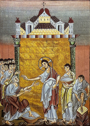 중세의 미술가들은 이집트의 미술가들이 아는 대로 그리거나 그리스의 미술가들이 보이는 대로 그리는 방식과 달리 그들이 표현하고자 하는 바를 형식이 아닌 내용에 담는 것에 집중했다. 왼편의 그림에서 그리스도와 주변인들에 대한 묘사는 지극히 비현실적 구도를 보인다. 그리스도 뒤편의 황금색 벽과 이오니아 기둥이 뒤편의 도시를 떠받치는 것은 상상조차 불가능하다 그리고 왼편의 무리는 원근법조차 느껴지지 않는다. 하지만 이 그림의 목적은 그것과는 무관하다. 미술가는 저 장면을 그대로 재현하고자 하는 생각이 전혀 없다. 그는 예수와 베드로가 나누는 "세족"과 "구원"에 대한 이야기를 전한다. <요한복음> 13장의 내용을 다루고 있는데 예수가 우리가 지은 원죄를 대속하고 원죄 이후 우리가 저지른 죄까지 모두 씻어주고자 함을 이야기한다. 예수는 십자가에 못 박힘으로 우리의 원죄를 대속하고 세족으로 이 세상에서 저지른 죄까지 씻어줌으로써 구약의 신과 맺었던 계약에 대한 불이행을 예수가 대속하고 새로운 계약을 맺음으로써 인류가 예수와 새로운 관계를 맺는다는 것을 보여준다. 오른편의 그림은 원죄를 저지른 직후 그리스도가 아담에게 죄를 묻는 장면을 보여준다. 이 장소가 에덴동산이며 어떤 모습을 하고 있는지는 전혀 그려지지 않는다. 왼편에 그리스도가 손가락으로 아담을 가리키며 아담의 죄를 묻고 있다. 아담은 몸을 숙이고 부끄러워하며 이브를 가리키며 그녀가 부추긴 것이라 변명한다. 이브는 몸을 더 숙이며 땅바닥의 뱀이 자신을 유혹한 것이라 책임을 떠넘긴다. 이 모든 사건의 소재인 선악과로 보이는 식물이 아담과 이브 사이에 위치한다. 미술가는 필요한 정보 이외의 것들은 모두 삭제했다. 그에게는 성경의 내용을 선택적으로 표현하는 것이 내용의 전달에 효과적이기 때문이다.