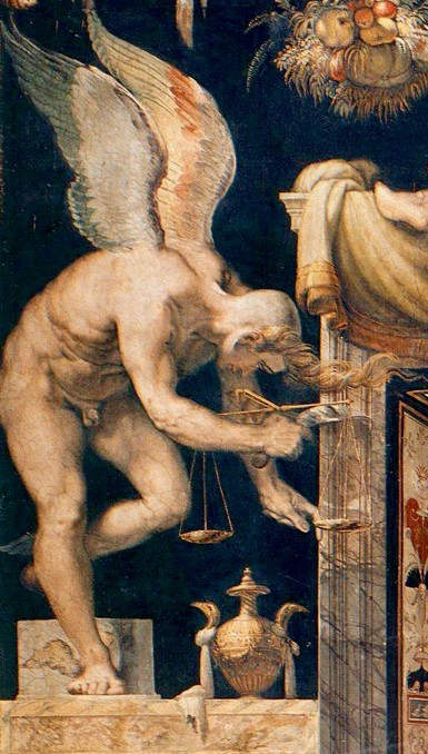 오른손에 칼이 주어진 것은 칼날로 자르듯이 빠른 결단을 내리라는 것이다.