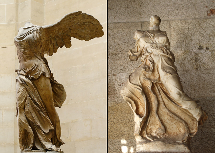 위의 두 <승리의 여신> 조각은 엄청난 운동감을 보여준다. 왼편의 <사모트라케의 니케아>는 잘린 팔이 돌진하는 그녀의 승리에 대한 확신을 조금도 저해하지 않는다. 오른편의 칼리마코스의 니케아는 부유하는 듯한 승리의 여신을 날개와 다리의 부재로도 완벽히 표현했다.
