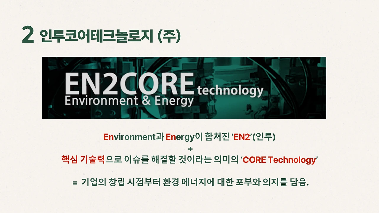 플라즈마 기술은 하나다. 이 기술이 조직 안에서 어떻게 배치되고 연결되느냐에 따라 인투코어는 다시 하나의 조직으로 정렬될 수 있다. 이 정렬 위에서 반도체는 현재를 지탱하는 기반이 되고, 환경에너지는 미래 가능성을 확장하는 추진력이 되어 기업을 지속가능한 성장 경로로 이끈다.