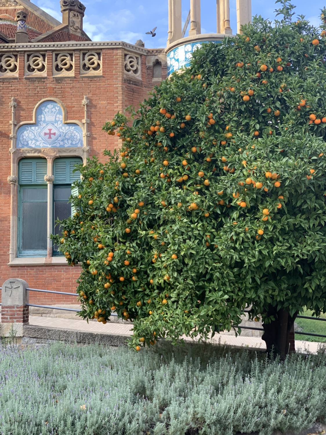 가우디 애비뉴를 따라 올라가다 보면 오늘의 목적지 산 파우 병원이 나온다. 가우디 건축물들에 비하면 덜 알려져 있지만 가우디의 선생님이자 라이벌이었던 건축가 도메네크 몬타네르의 작품이고, 적극 추천하는 후기들을 보고 온지라 외관에 살짝 실망했다. 건강검진도 싫어하는데 여행 와서 웬 병원을 가야 하는 건지 싶었다. 하필 또 방금 사그라다 파밀리아를 지나쳐 왔기에 ‘괜히 온 건 아닐까’라는 마음이 몽글몽글 피어났다. 천천히 여러 구역으로 나누어진 산 파우 병원을 둘러보기로 했다.