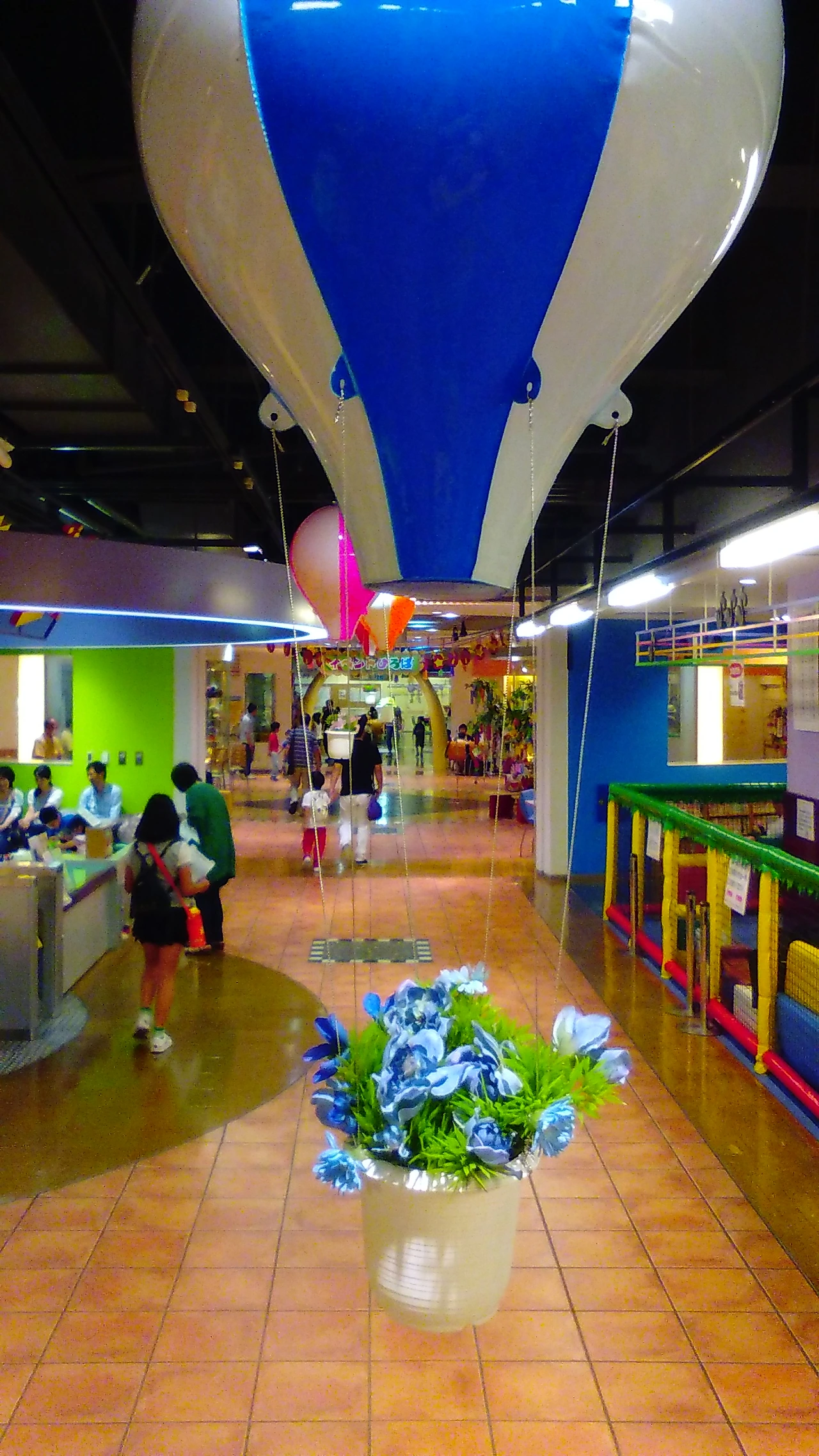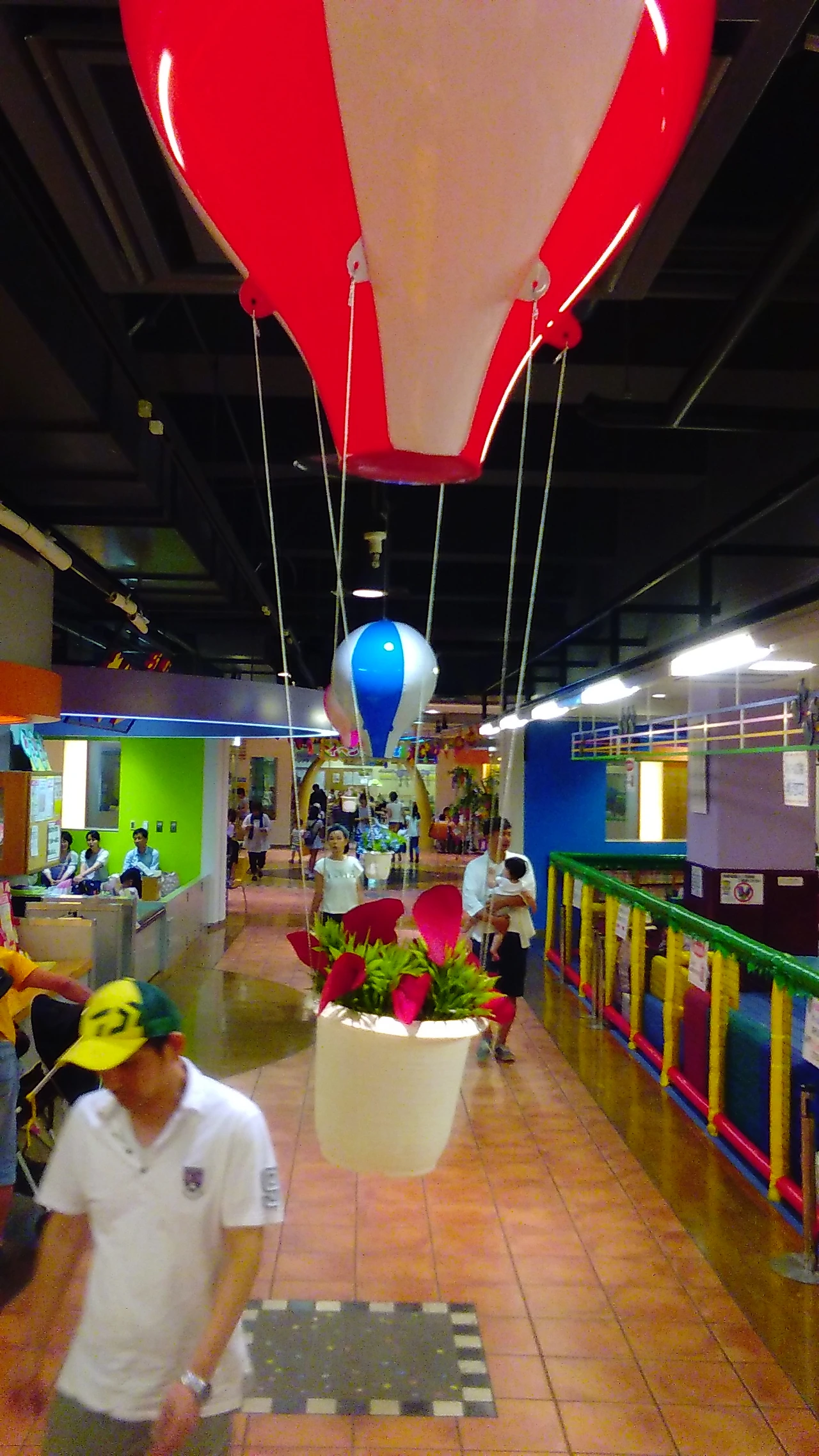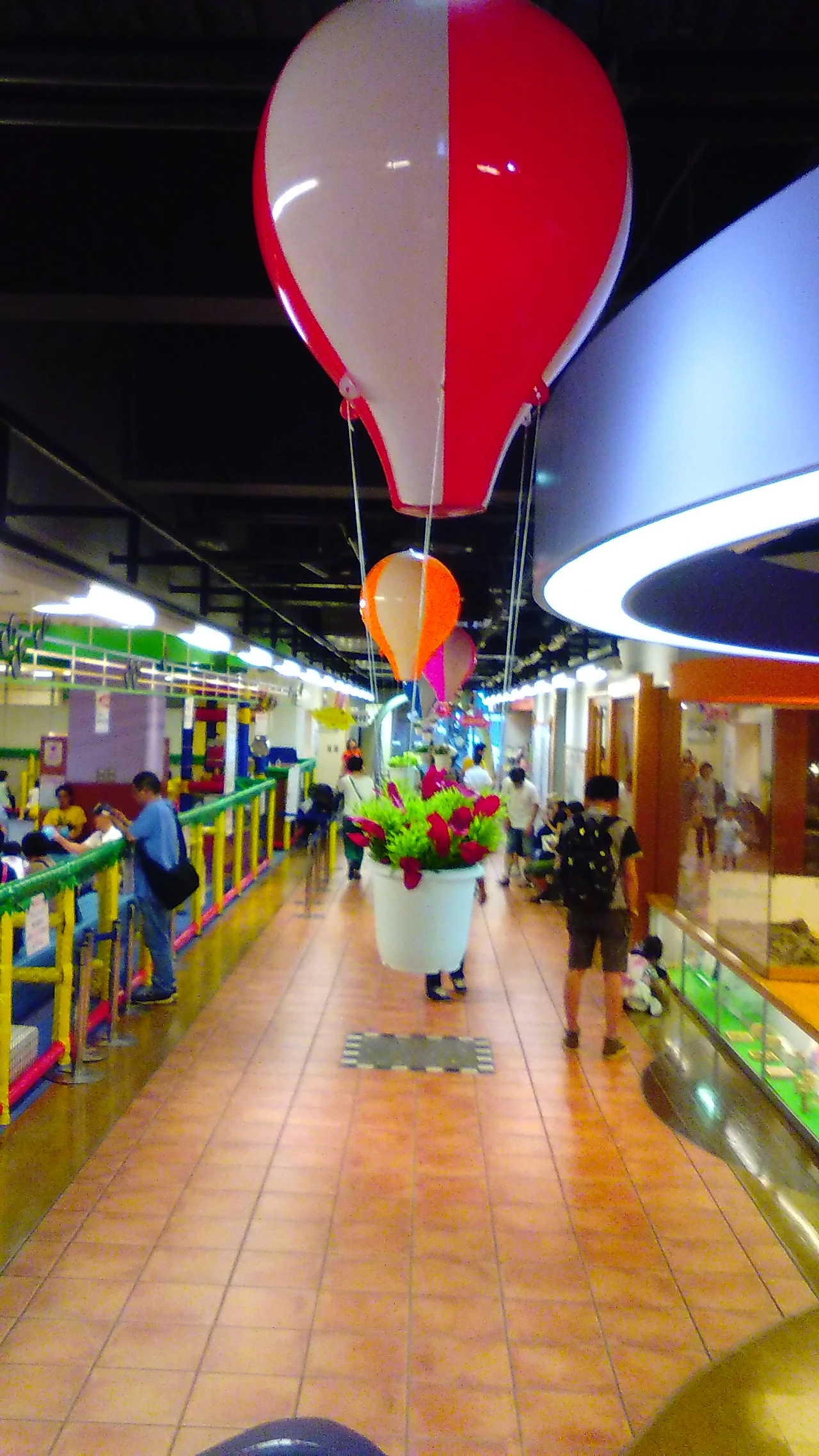아빠가 통로 중간에 걸려 있는 열기구 화분에 눈을 돌립니다. 아빤 열기구 모형에 달려 있는 화분들이 신기한가봐요. 중간중간에 서서 계속 사진을 찍어 댑니다. 각도를 달리 하느라 까치발까지 들며 높은 데서 아래로 찍어 보려고 애씁니다. ^^