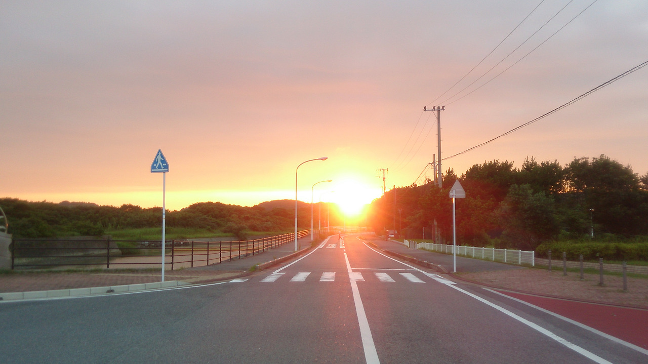 잠자러 가는 태양의 사진은 해양공원 옆 도로입니다.