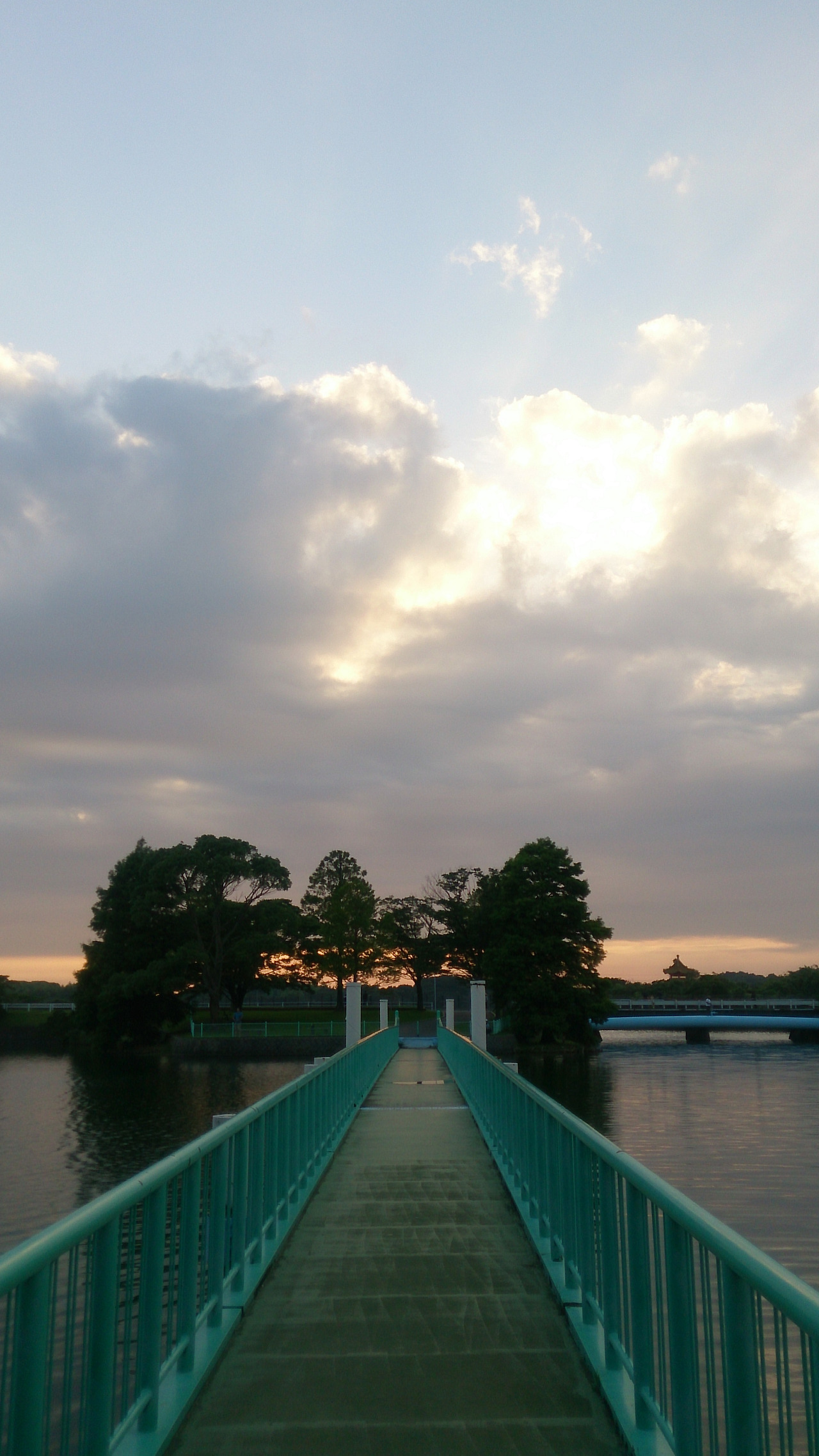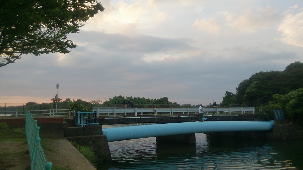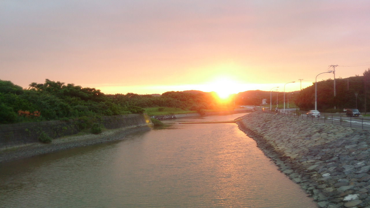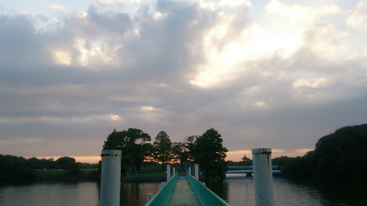 키타큐슈의 톤다 저수지와 오오키타정자의 해질녘입니다.
