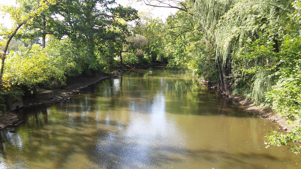 학교 안에는 개천이 평온하게 흐르고 있었습니다.
