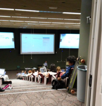우리의 발걸음은 건물 안으로도 향했는데 알고 보니 경영대 강의가 이루어지는 곳이었습니다. 9월이라 개강한 지 한 달이 채 안 되는 학교의 각 교실들은 여기저기 강의가 한창이었습니다. 한 계단식 강의실에서도 강의가 진행 중이었는데 뒷문이 열려 있어 안쪽을 들여다볼 수 있었습니다. 계단 아래 강단에 한 동양인 교수님이 다양한 인종의 학생들에게 경영 관련 한 과목을 가르치고 계셨습니다. 친구가 그분을 보더니 한국 교수님이라고 했습니다. 그것도 학창 시절 선후배 사이로 지내던 형이라고 하는 게 아니겠습니까? 정말 세상 좁다고 무릎을 탁 칠 일은 그분이 친구 J와 저의 고등학교 선배라고 하는 것이었습니다.