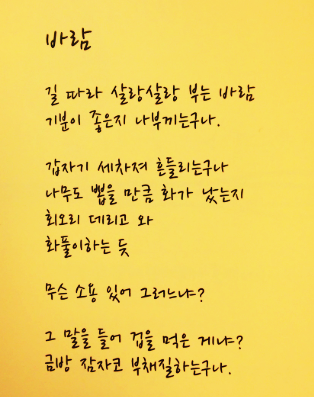 요즘은 하은이의 '바람'이라는 시가 어울리는 날씨입니다.