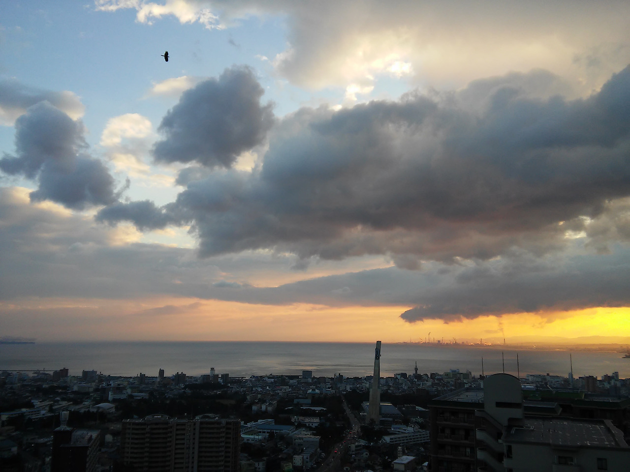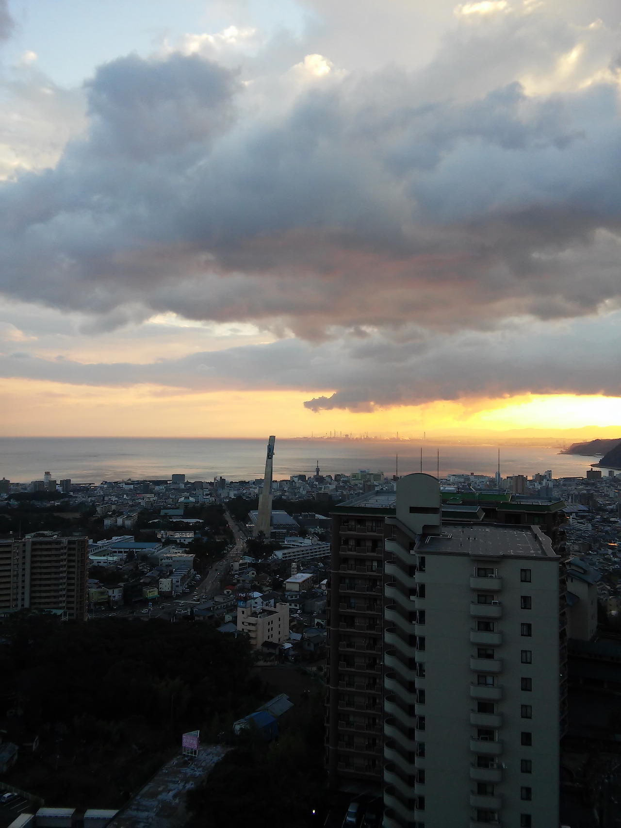 벳부 스기노이 호텔에서 바라본 바다와 하늘과 시내