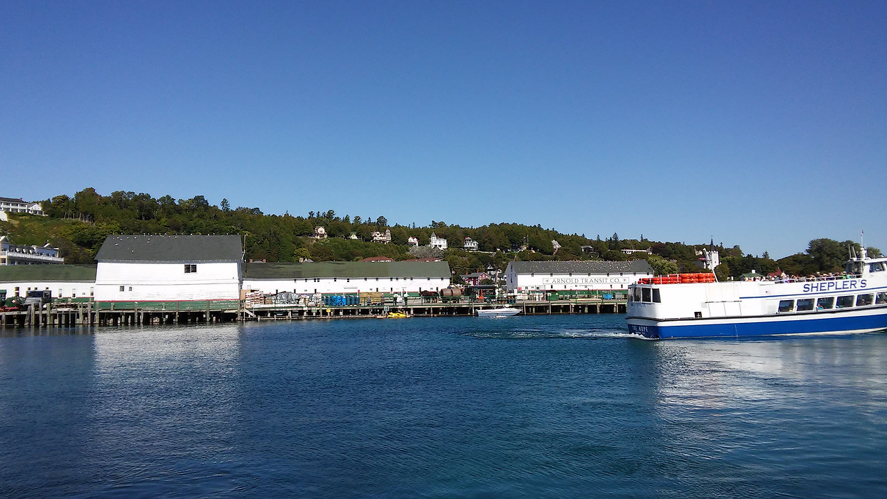 미시간 도착과 오대호의 매킨나 아일랜드