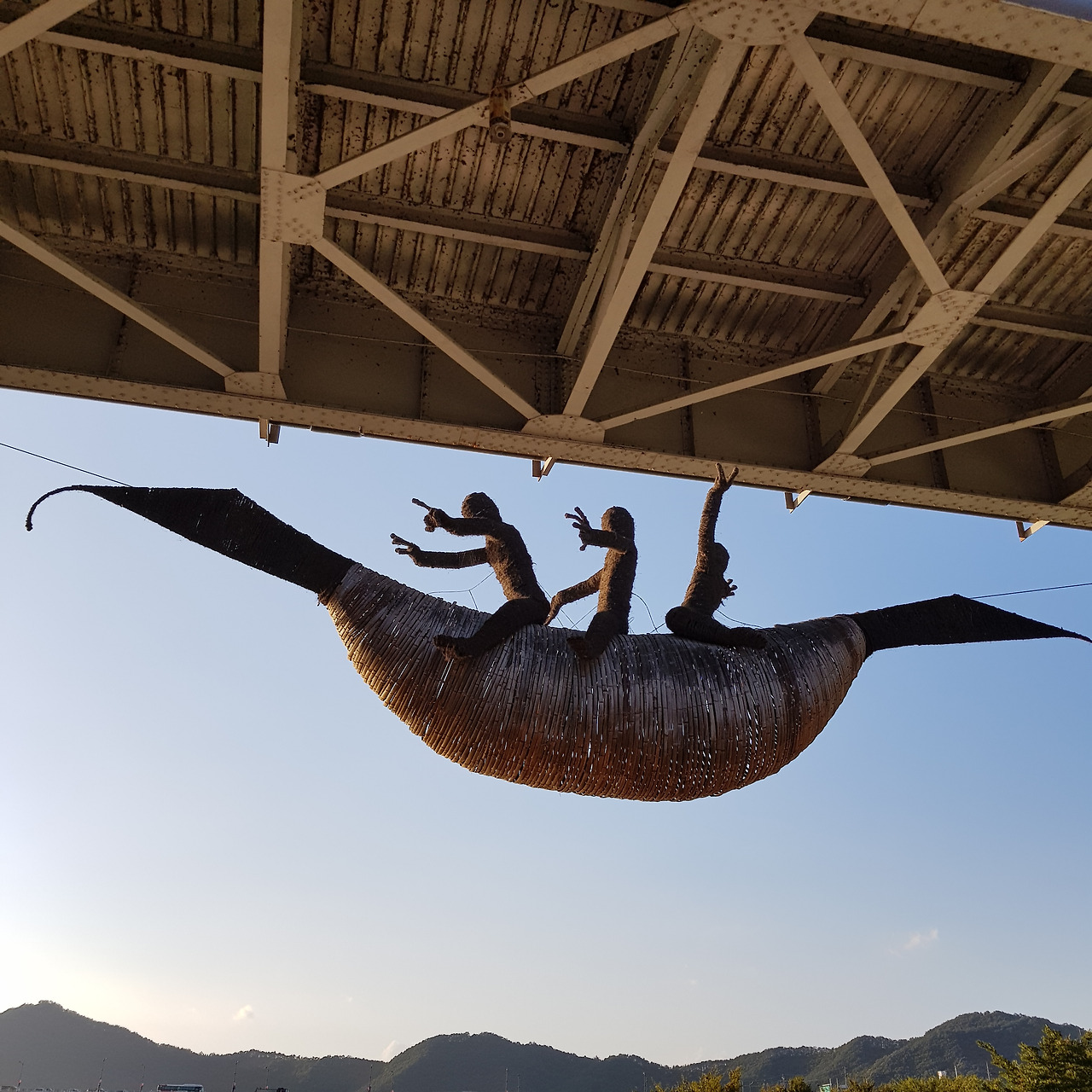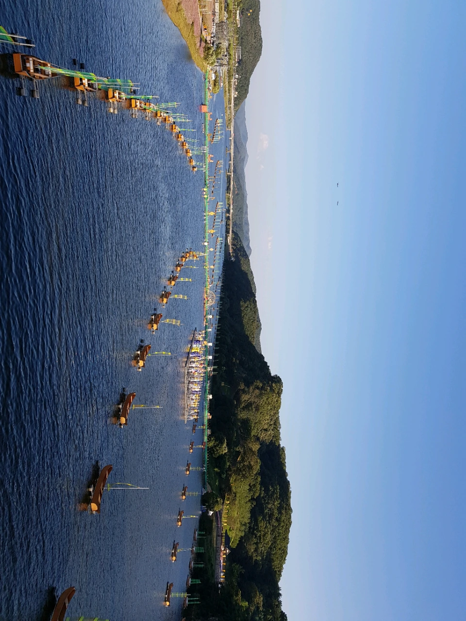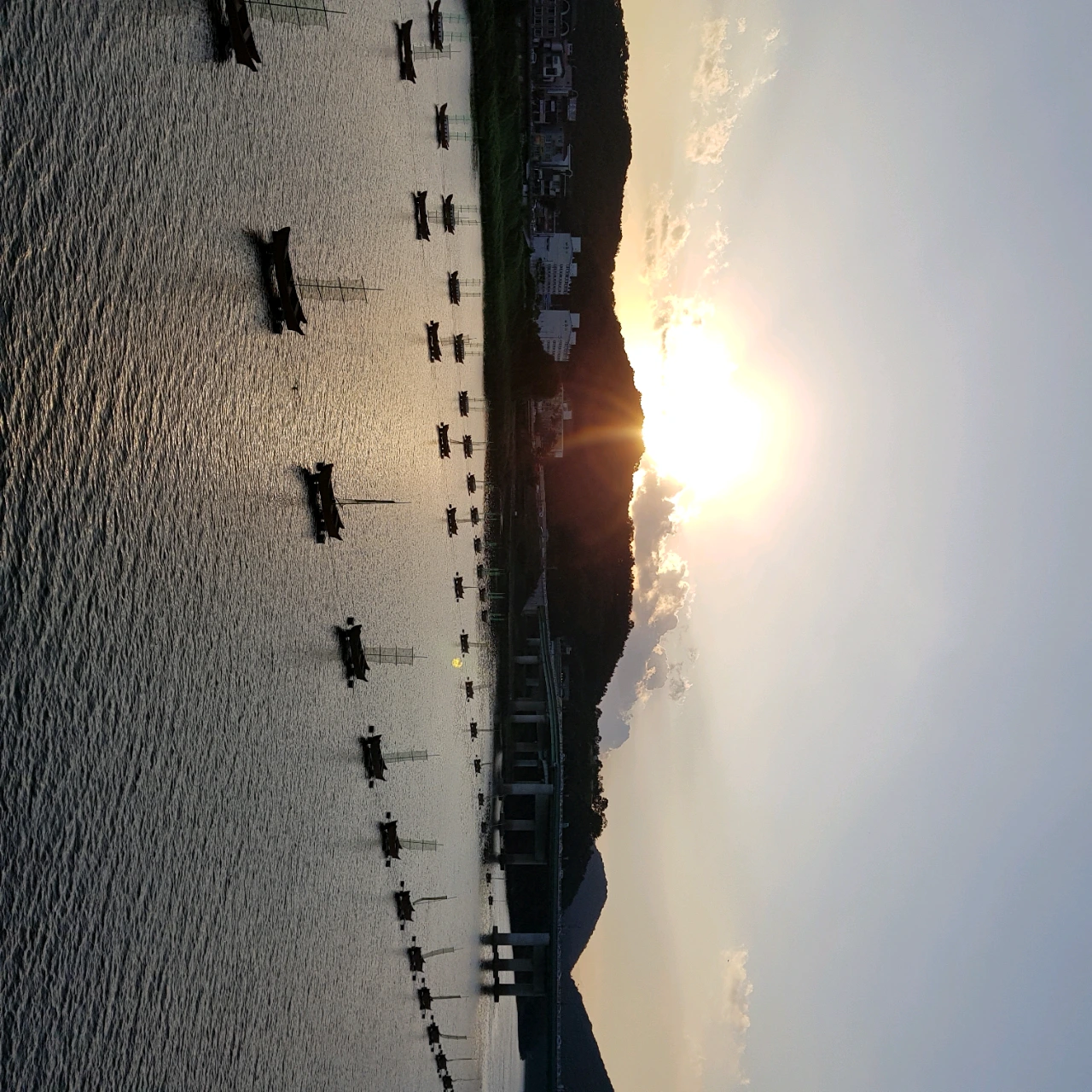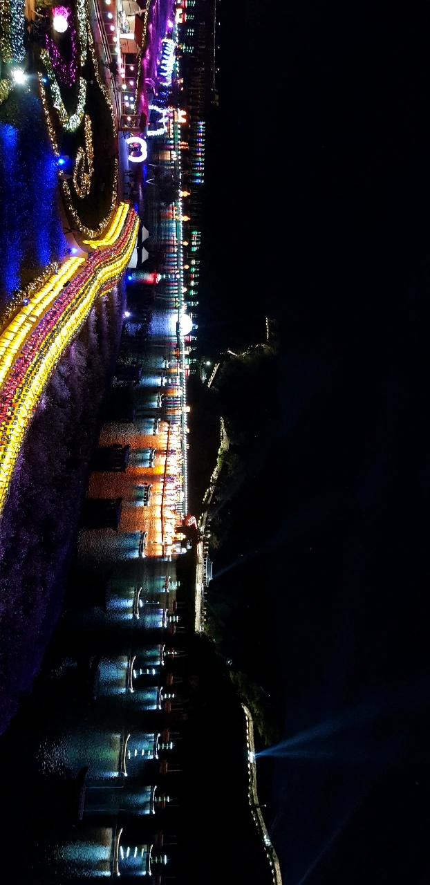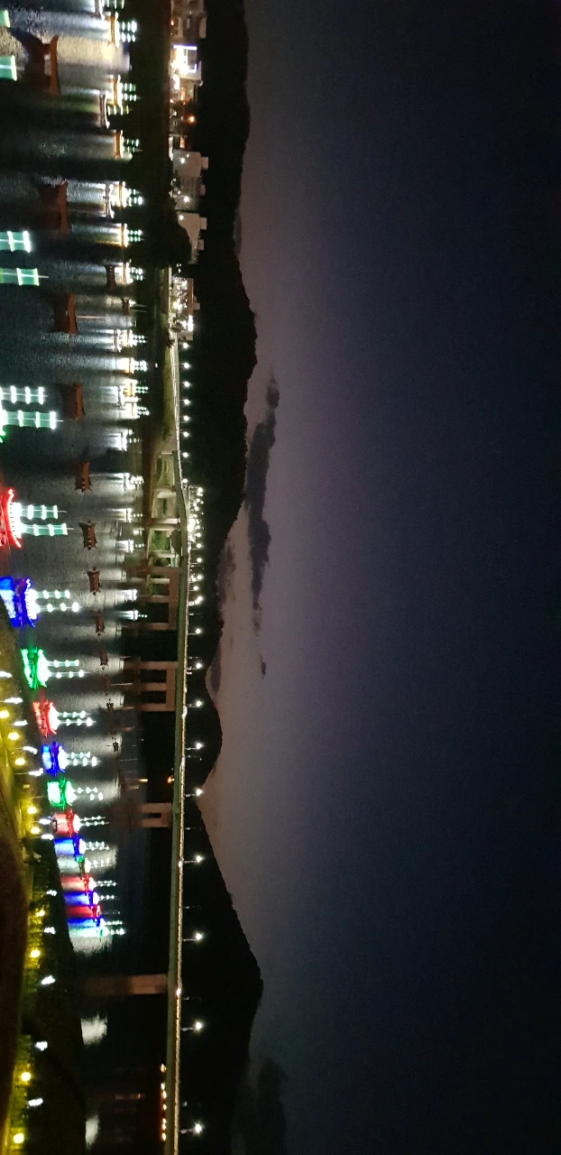 안쪽 숲길을 조금은 빠른 길로 지나치자 오른 편으로 다시 금강이 보이기 시작했다. 햇살이 닿던 그곳에 어둠이 깔리자 전혀 새로운 모습이 되었다. 내가 살던 키타큐슈의 온가강은 인공적인 조명이 별로 없었는데 이곳은 역시 관광지가 맞았다. 금강 위에서 열병식을 하던 목조 돛단배들이 형형색색의 빛을 띠며 화려한 밤을 수놓고 있었다. 여수 밤바다를 생각나게 할 야경이 연출되었다.