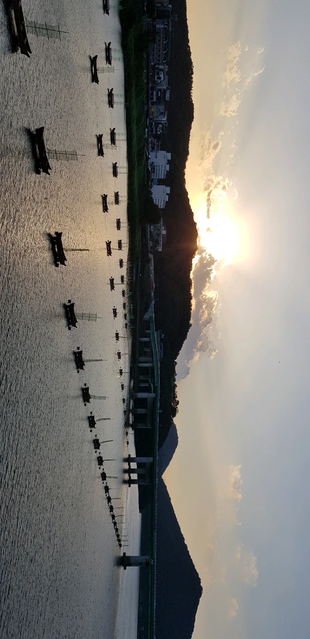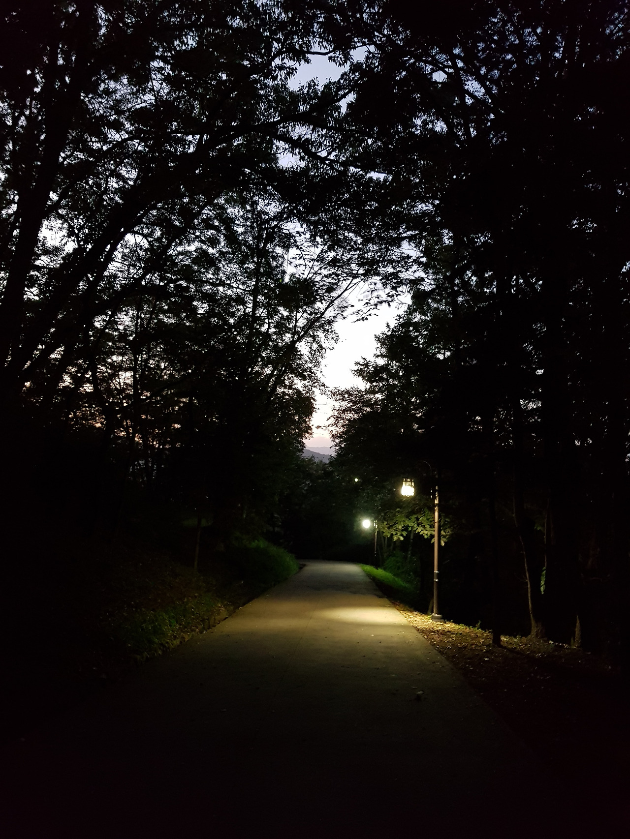 솔직히 고백하자면 마음은 그 화려한 빛의 향연이 아닌 다른 풍경에 더 끌렸다. 화려한 빛으로 반짝이는 금강을 앞에 두고 해 넘어간 석양빛을 뒤에 둔 실루엣. 흑색의 자태로 눈을 사로잡는 산세와 하늘의 구름. 금강 야경 사진을 여러 장 찍었으나 화려한 빛보다는 그 흑빛의 그윽하고 품격이 느껴지는 실루엣이 더 좋았다.