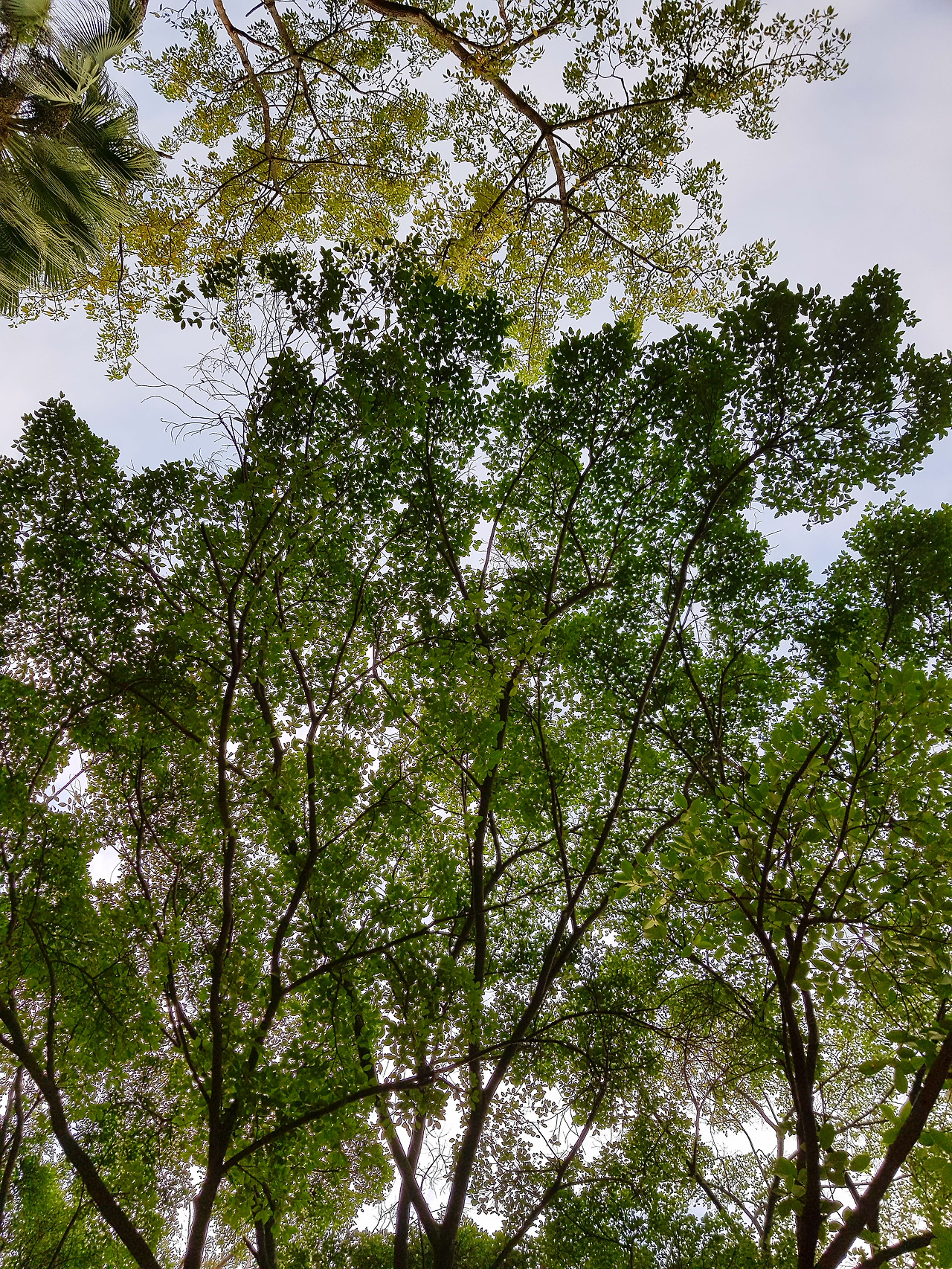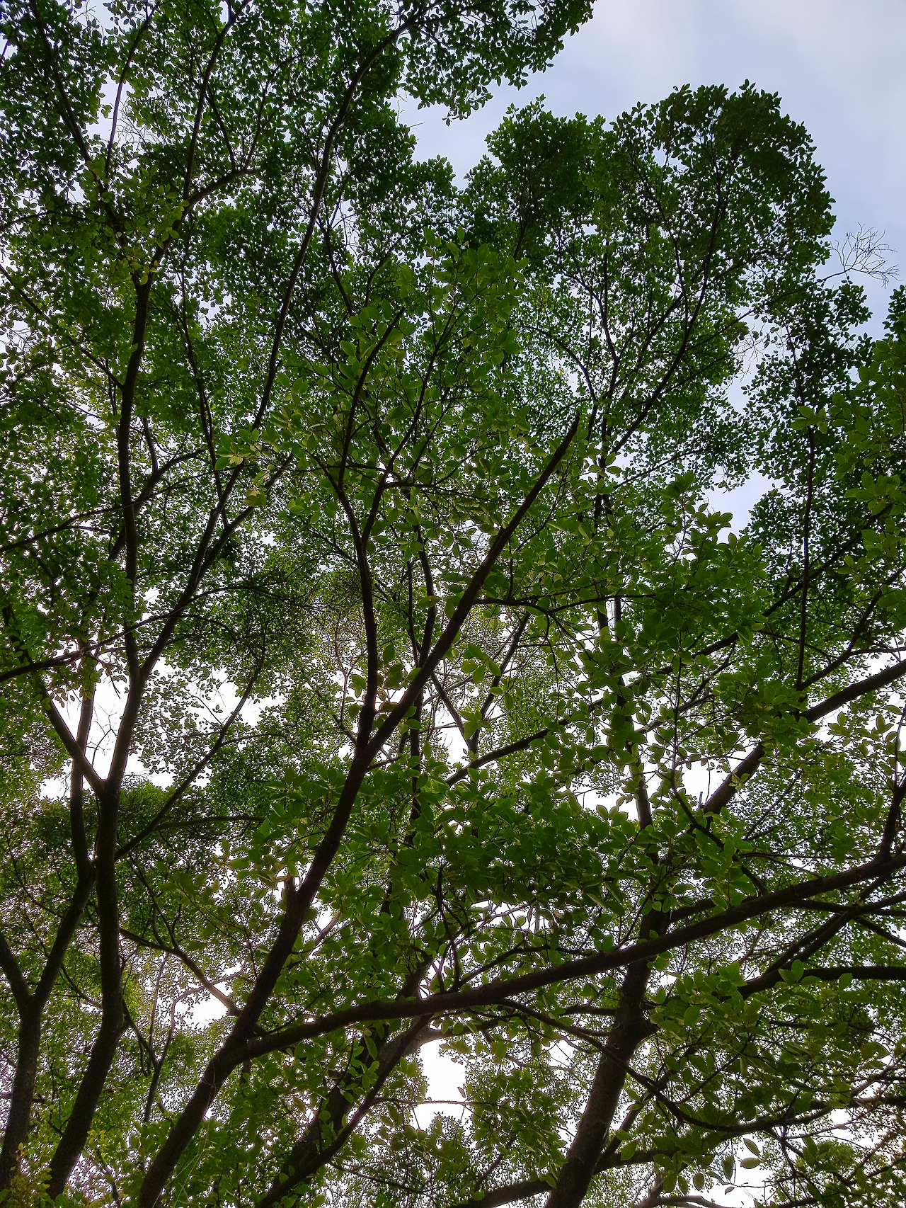 누워서 위를 올려다 보니 파란 하늘 배경에 푸르고 푸른 나뭇잎들이 촘촘하고 빽빽히 들어차 눈에 들어왔다. 몽롱해지려 하는 찰나에 거목의 무수한 가지들에 붙어 있는 초록빛 잎새들을 보면서 엉뚱한 생각이 들었다.