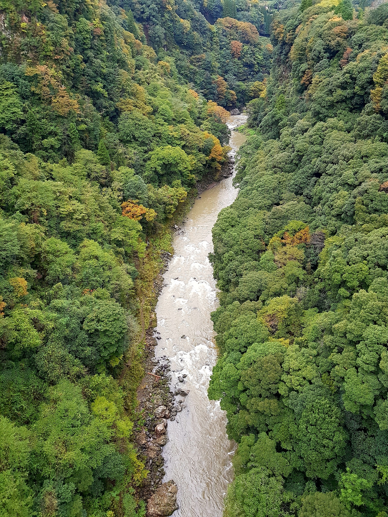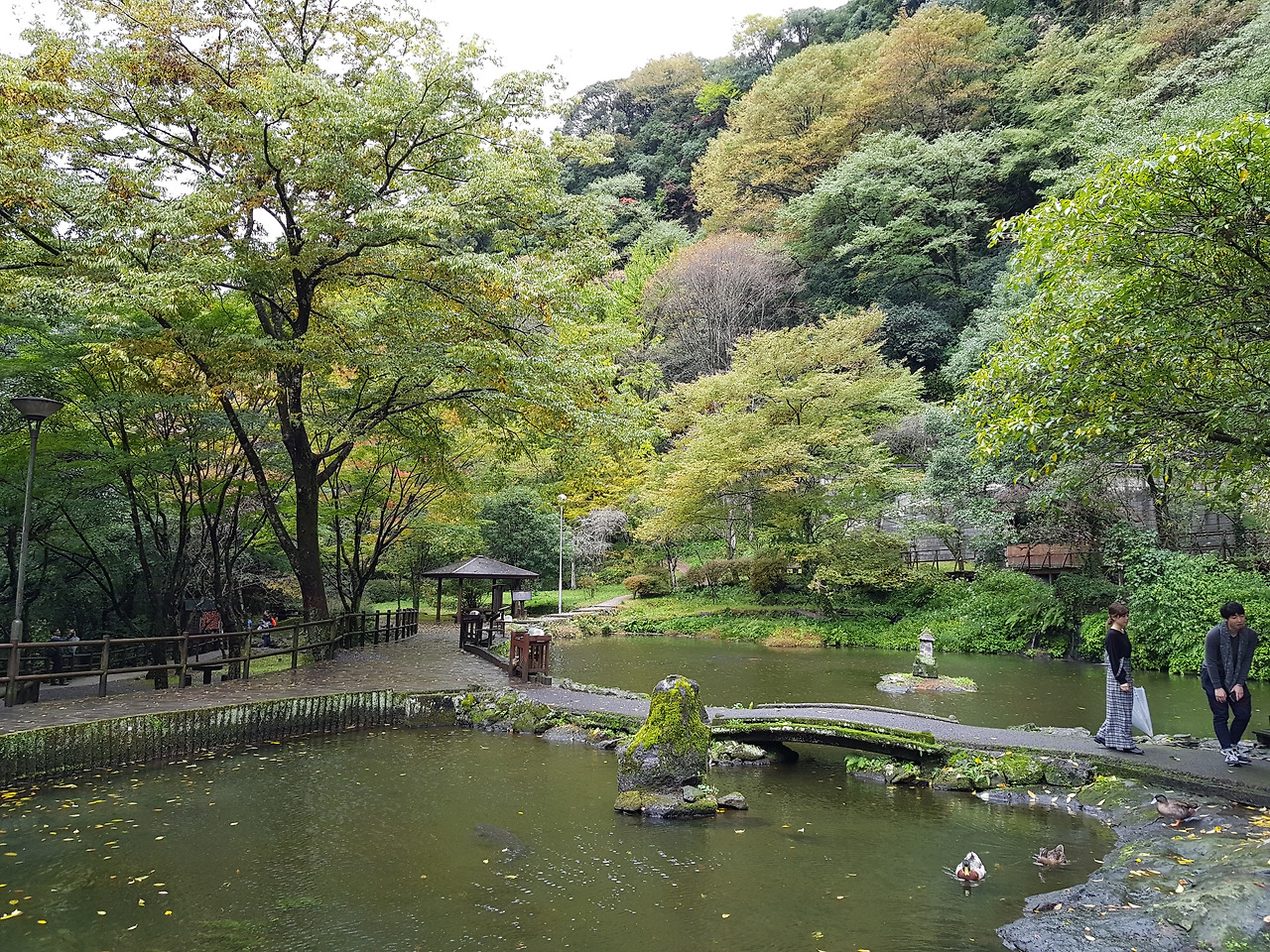 협곡이 시작되는 지점에 일본식 연못과 정원이 꾸며져 있었다. 못 주위로 거닐 때 보니 세찬 계곡의 바람이 나뭇잎들을 눈송이처럼 날리고 있었다.