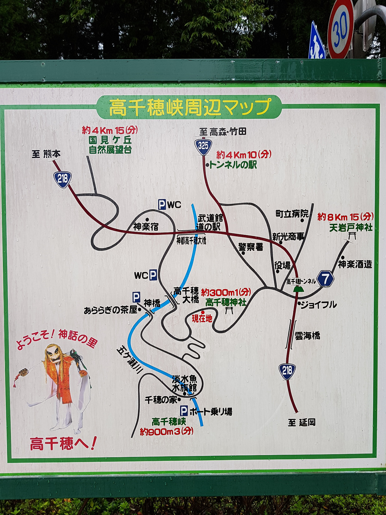 내가 사는 키타큐슈시로부터 약 240km 떨어진 것으로 나오는 타카치호 계곡까지 가는 길은 예상보다 오래 걸렸다. 차로 대략 3시간 반 정도면 도착하리라 생각했지만 중간에 휴게소에 들러 식사를 하며 반 시간 정도 쉬었다 가니 거의 네 시간 반을 넘겼던 것 같다.