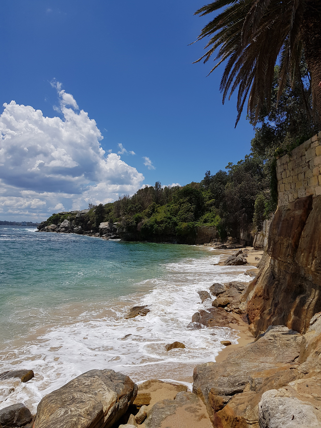 어디가 어디인지 방향을 정확히 잡고 가기 보다는 발길 닿는 대로 길이 나 있는 곳으로 걸었다. 중간에 아담한 암벽으로 둘러쌓인 아담한 백사장이 나왔는데 이곳의 사진을 찍어 나중에 시드니 동생에게 보내 주었더니 그곳이 누드 비치라고 했다. 그러나 그곳엔 아무도 없었다. 사전 지식이 없었기 때문에 혹시 그곳에서 누드로 일광욕을 즐기는 사람을 맞닥뜨렸다면 조금 당황했을지도 모르겠다.