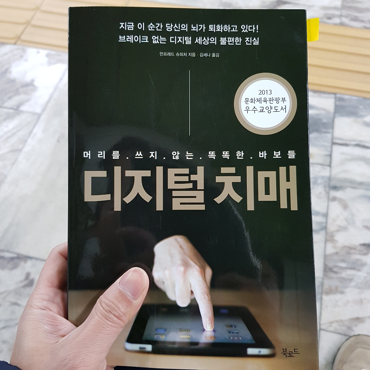 처음 '디지털 치매'라는 책 이름을 보고 오해를 했다. '디지털 치매'의 뜻이 디지털 기기를 잘 다루지 못하는 사람을 가리키는 게 아닌가 하고 생각했던 것이다. 그러나 책을 읽다 보니 전혀 그런 뜻이 아니었다. 제목은 우리 일상생활과 이제 떨어질 수 없어 보이는 수많은 디지털 기기로 인해 인간이 바보가 되어간다는 의미였다.
