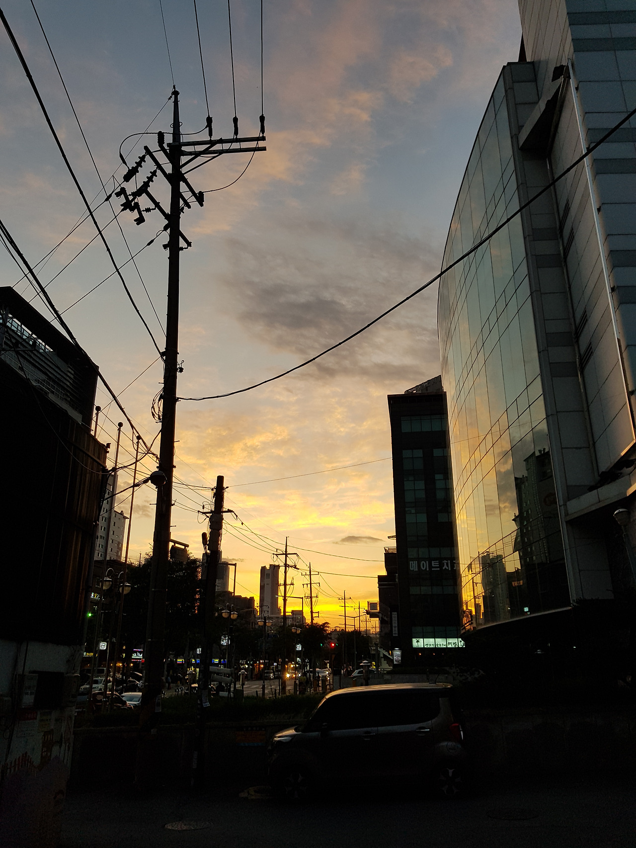 캠퍼스 길가 수풀 사이에 놓인 야외 테이블과 의자에 앉아 저무는 하루를 배경삼아 도란도란 이야기를 나누는 사람들이 군데군데 보였습니다. 오늘 나는 혼자였지만, 그 풍경만으로도 나쁘지 않더군요. 가까운 어느 날 나도 마음 통하는 누군가와 그렇게 하루가 저물어 가는 하늘 밑에서 이야기 나누고 싶습니다.